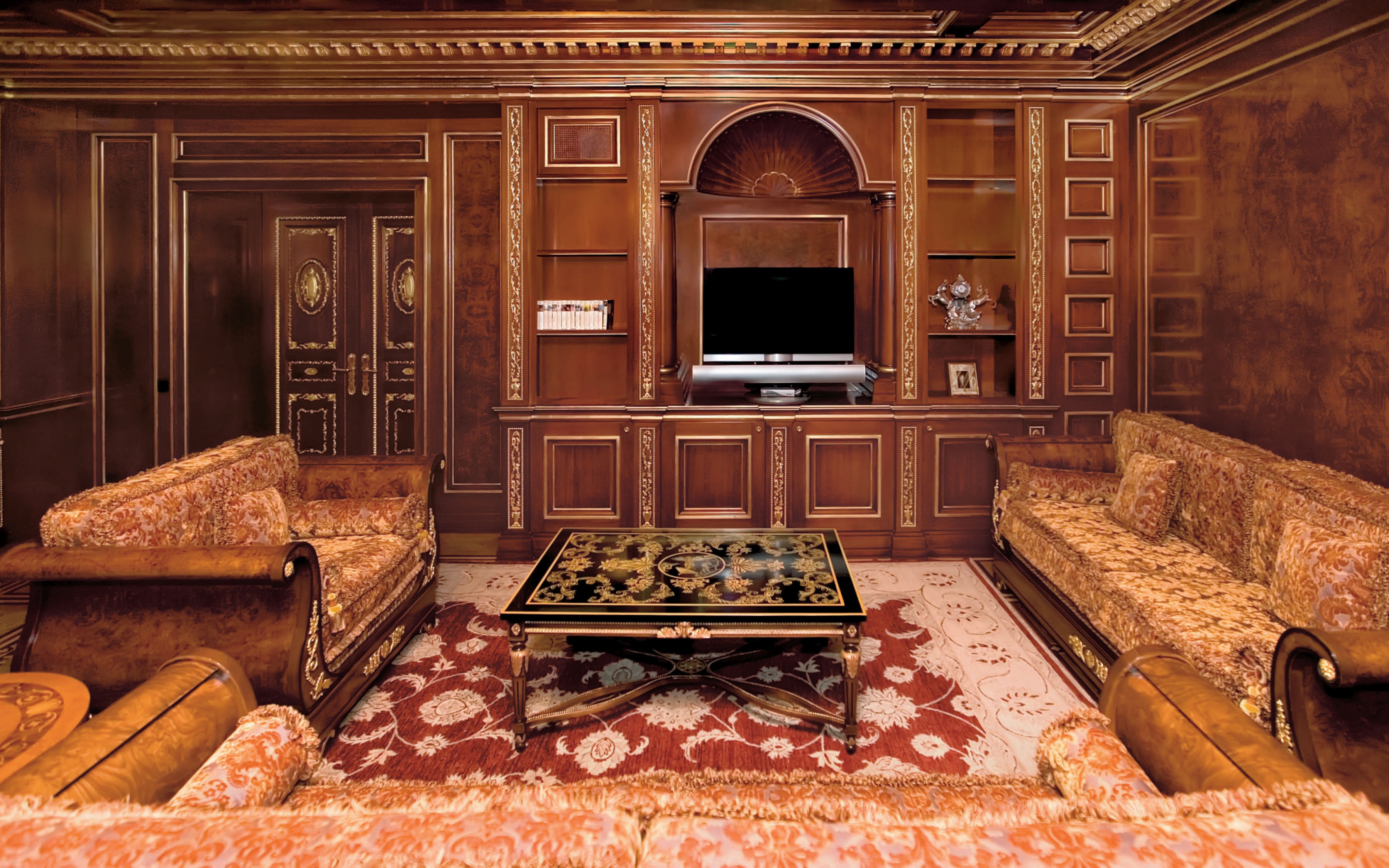 furniture, wall and ceiling panels: natural wood upholstery: textiles decorative elements: gilding |