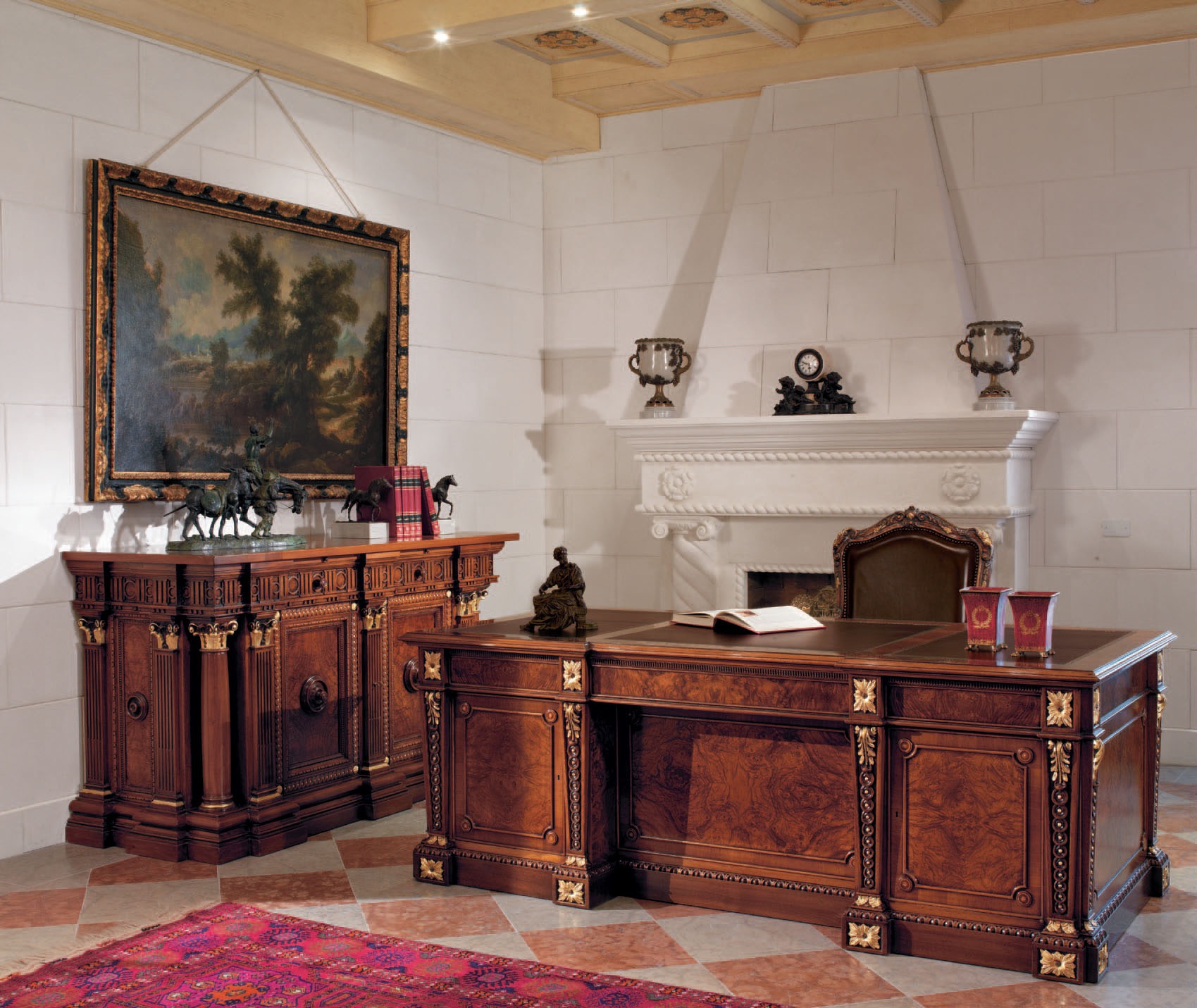 furniture: natural wood upholstery: genuine leather decorative elements: gilding |