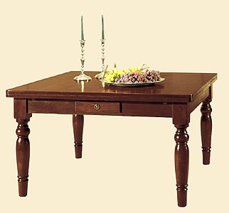 Folding dining table from Italian manufacturer DOLFI. The frame is made from solid wood in the finishing varnish. Model with drawer. A wonderful choice for the dining room in a classic style. Product color natural wood.