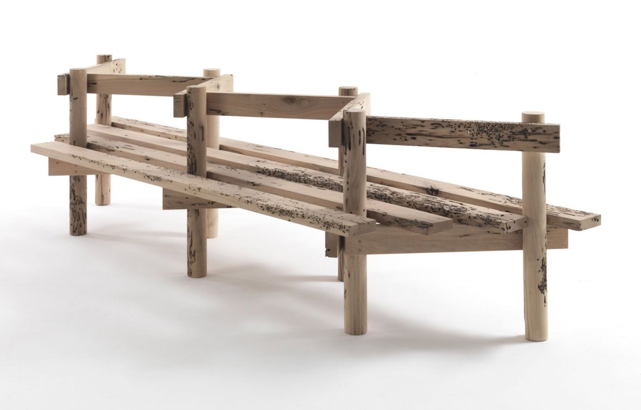 Bench Palizzata from the Italian manufacturer Riva 1920. Made entirely of wood. Color in stock. The model is designed for outdoor use, terrace, porch. Bench made in a modern style.
