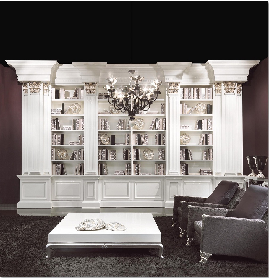 The rack is from the Italian manufacturer Elledue. The frame is made from solid wood. Finish: carving, lacquer, silver plated decorative carved elements. Model for books will decorate the living room, office, library in a classic style. Colours: shades of natural wood, white, in stock.
