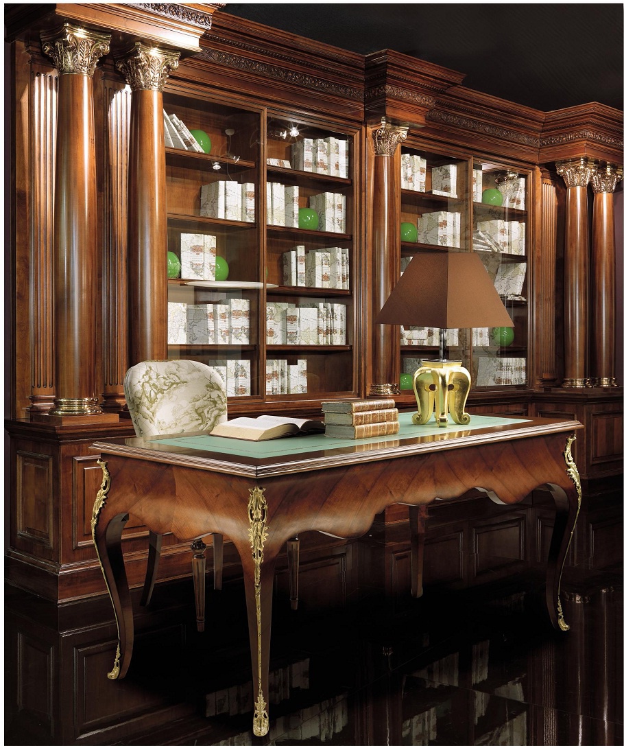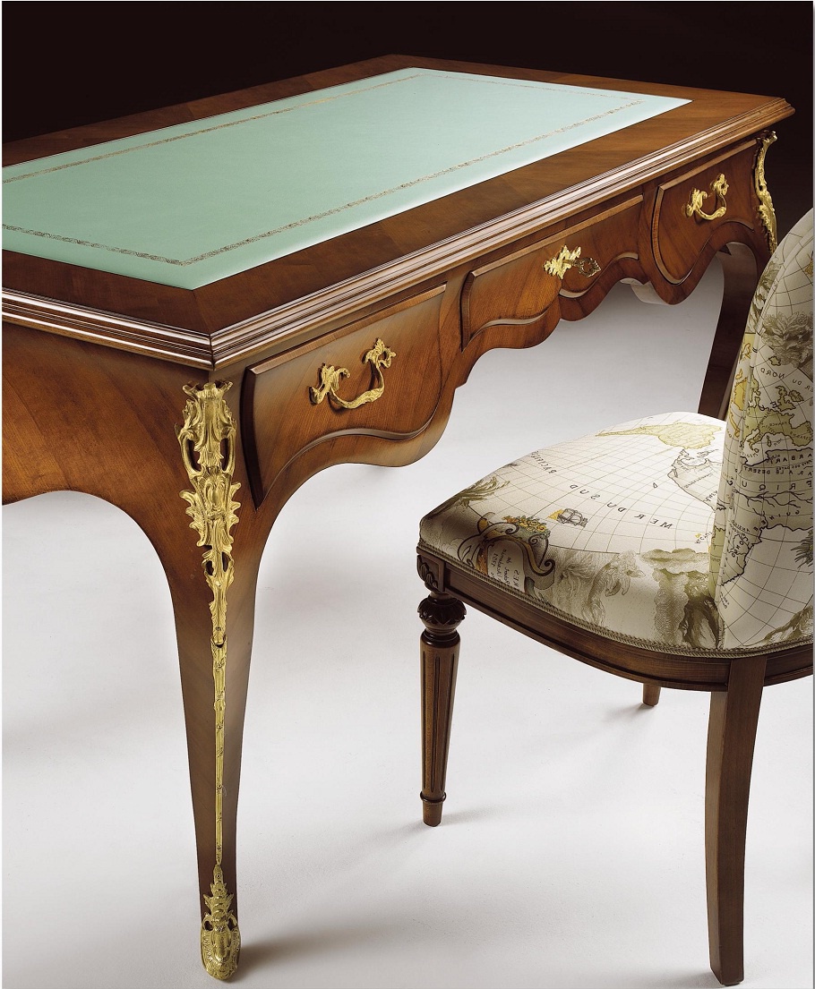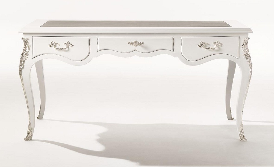 Writing table from the Italian manufacturer Elledue. Table top, legs made of natural wood. D?cor is hand carved. Fittings and thread covered with gold or silver, to choose from. Colors - in stock. A great choice for the office in classic style.