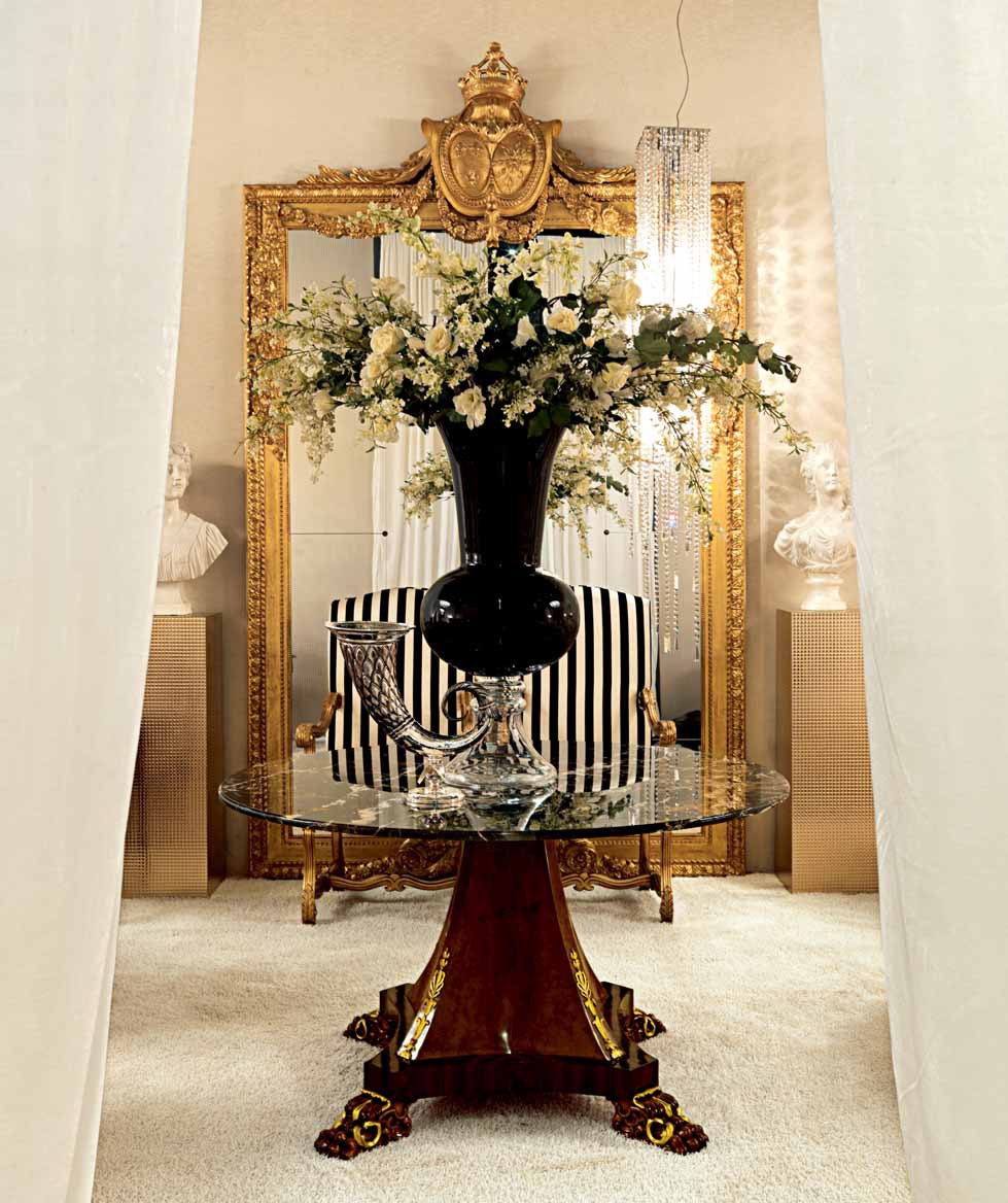 Table Round coffee Table – Marble Top Italian manufacturer Zanaboni. Presents a table of round shape, massive stem with multiple branches. Decorated with Golden paintings. Table top of black marble. Perfectly complement the interior in the Baroque style.