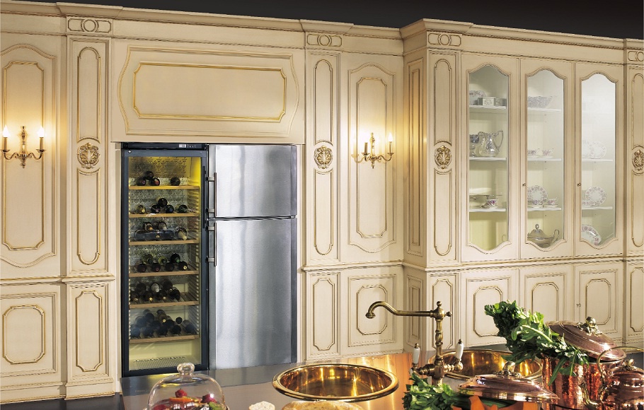 Set for the kitchen from Italian manufacturer Elledue. Set is made in a classic style. Furniture made of solid wood, the surface is treated with varnish from the company portfolio. Fold - deaf, in a dedicated section under the cooler. The kitchen is decorated with hand-carved, covered with gold leaf. Product color - beige. Beautiful set in classic style will decorate the kitchen, give comfort, comfort, providing the perfect mood, which is important when cooking. Complete set of kitchen modules is varied.
