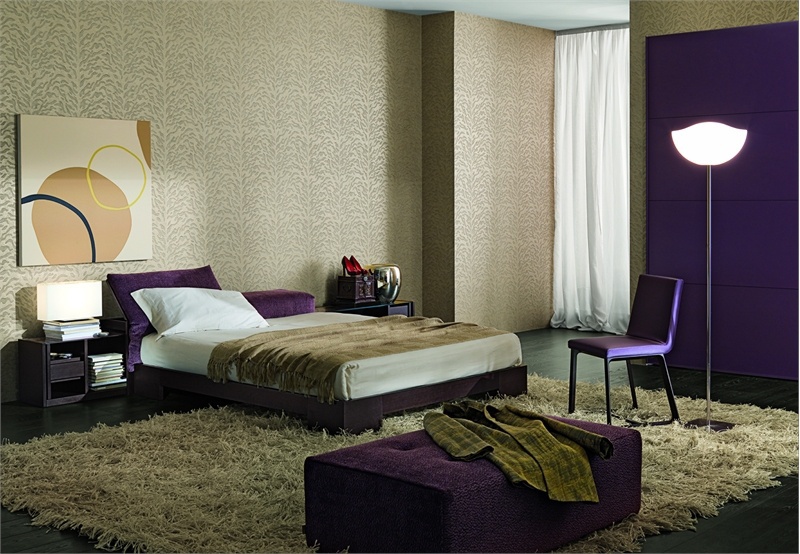 Bed-transformer with folding headboard Eric, Mobileffe. The model is executed in a purple color. The style is modern. The bed will give You comfort and reliability.