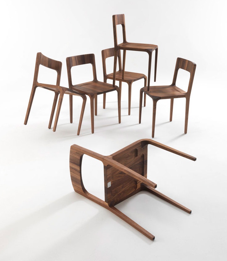 2013 Sleek chair from the Italian manufacturer Riva 1920. The model without armrests is made of wood. Available all types of wood in the catalog of the company. Design in modern style.