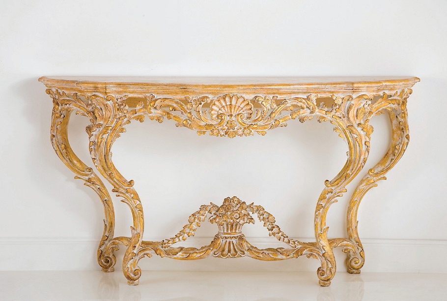 The console from the Italian manufacturer Chelini. The model is made in Baroque style. Top and base are solid wood. Decoration is a decorative hand-carved, lacquered. Colors - in stock. Perfect for living room, hallway.