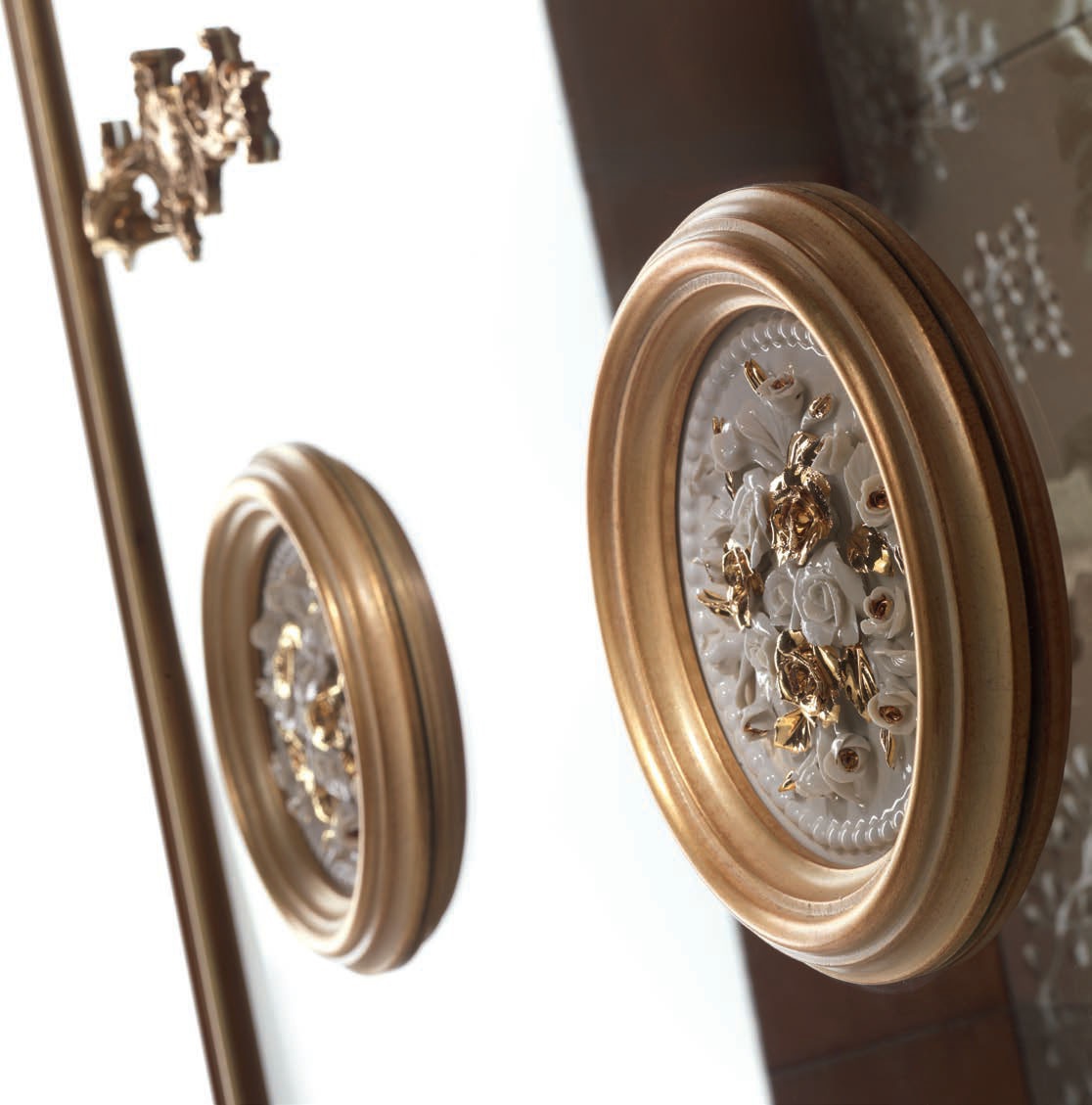 Showcase from Italian manufacturer Jumbo Collection. Canova collection, model, classic style. The frame is natural wood carving - handmade in gold plated finish. Colours in stock.