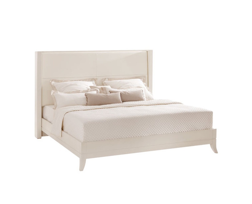 Double bed with high headboard Queen Downtown from the Italian manufacturer Selva. The model is made in American style. Bed frame made from solid beech. High headboard is soft, upholstered in textile or leather. Mattress sold separately. Colours and upholstery fabric in stock. There are different sizes.