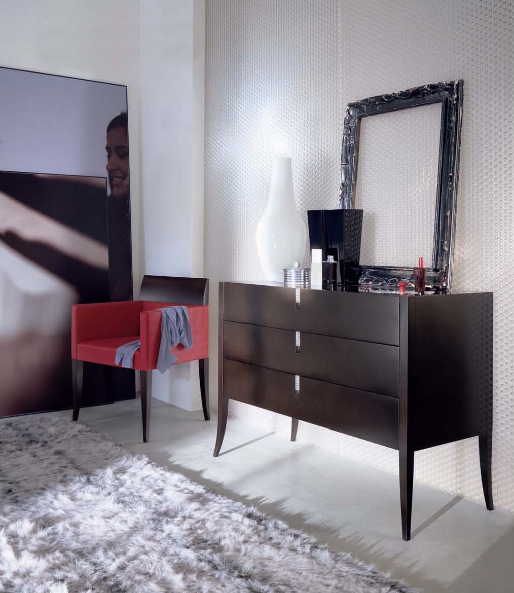 Dresser with drawers from solid wood Solitaire from the Italian manufacturer Selva. The model has three drawers that have inserts with niches. Handles have decorative inlays to choose from: amber, red obsidian, pearl or SWAROVSKI stones. The color scheme of the model in the catalog of the manufacturer. Chest Solitaire indispensable piece of furniture in any room.