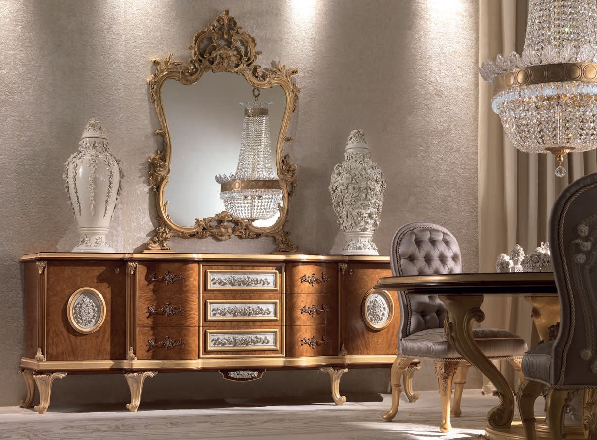 The buffet from the Italian manufacturer Jumbo Collection, Canova collection. Model in the classic style. The case is made from natural wood carving - handmade in gold plated finish. Colours in stock.