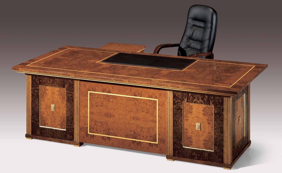 Desk with mobile drawers and console Horus from the Italian manufacturer Elledue. Table top, legs made from solid natural wood, lacquered. Part of the main countertop is a coating of natural leather. The table is accompanied by a retractable mobile dresser with drawers and top box. The d?cor is sleek painted and gilded fittings. Colors - in stock. A great choice for the office in classic style.