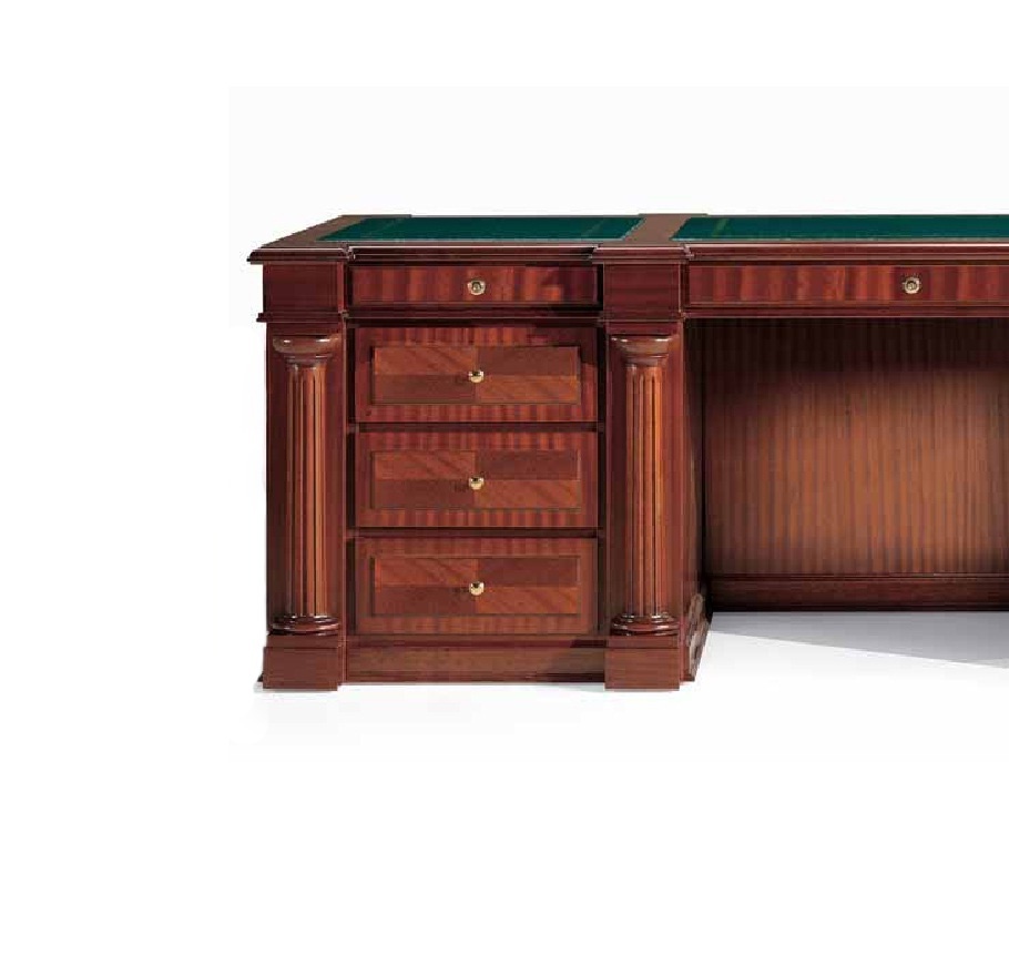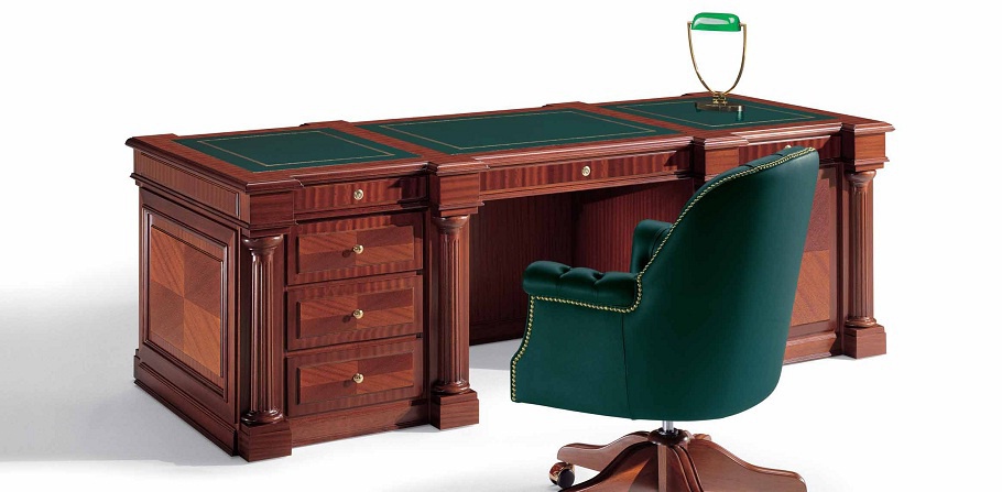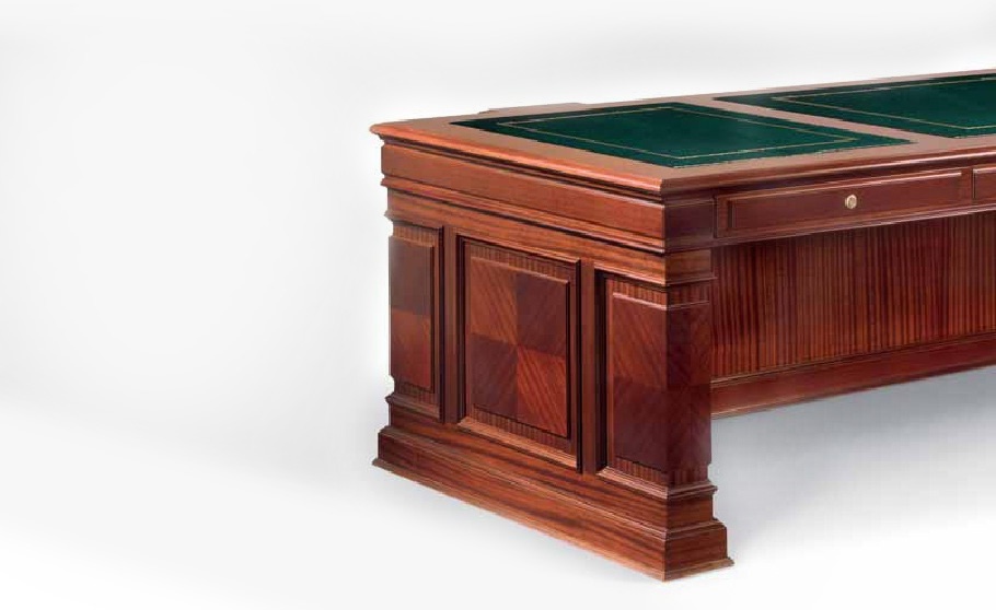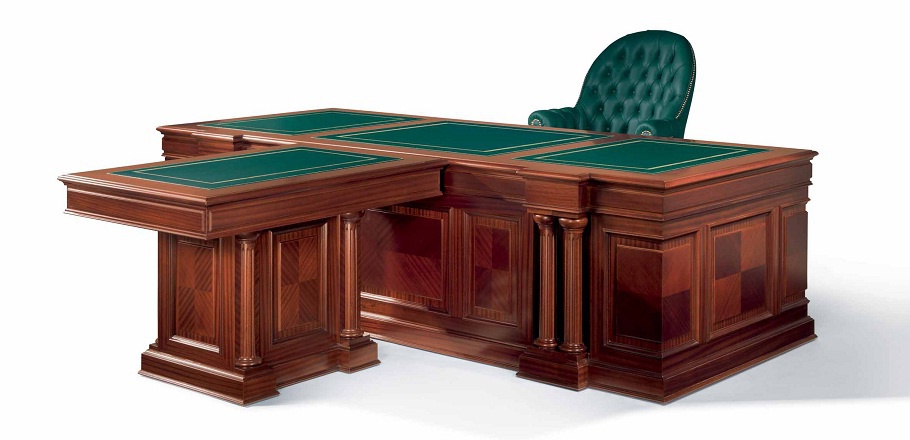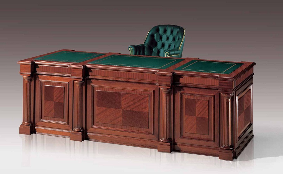 The Imperial Desk from the Italian manufacturer Elledue. Table top, legs made from solid natural wood, lacquered. Part of the countertop is decorated with genuine leather. Medel can be supplemented with a stand and a briefing. Element of the decor is uncluttered diamond-shaped figure. Colors - in stock. A great choice for the office in classic style.