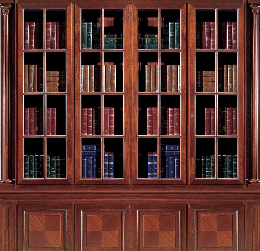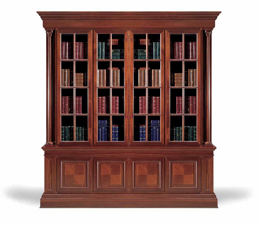 Bookcase, three Imperial from the Italian manufacturer Elledue. The frame, shelves made of solid mahogany, varnished. Top half glazed shutters. Element of the decor is uncluttered diamond-shaped figure. A chic choice for the office in classic style.
