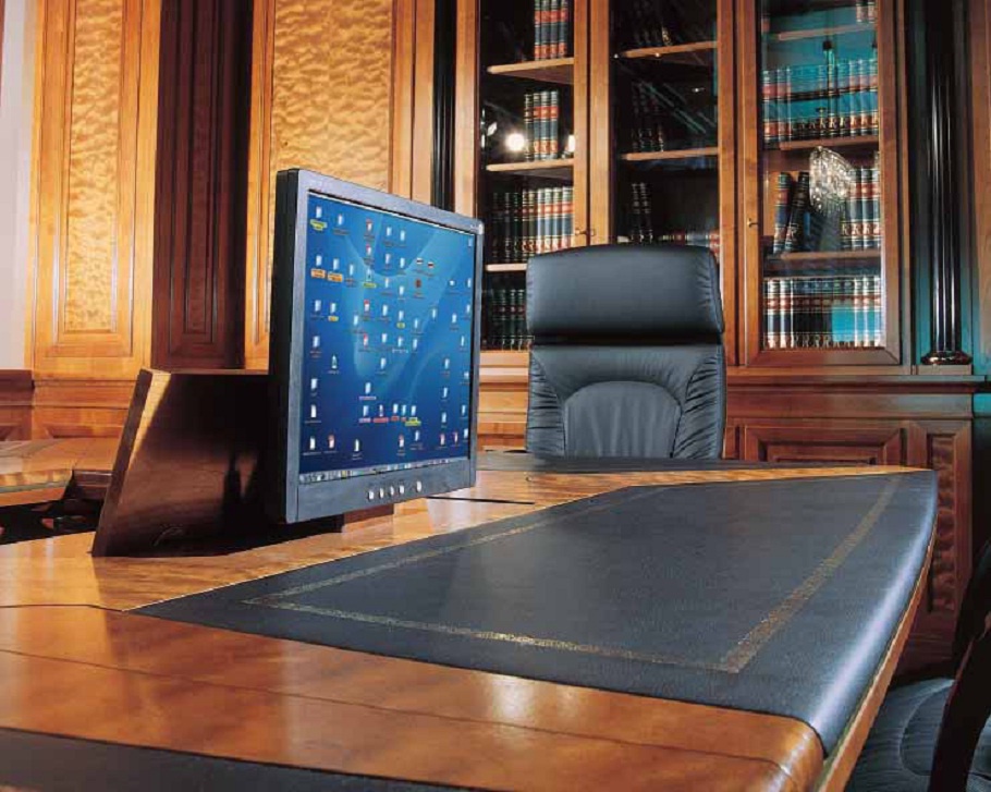 Table Kingdom from the Italian manufacturer Elledue. Colors, painting, plating and sizes are back in stock. This model is made of solid wood cherry and wild rose, varnished. D?cor is uncluttered thread, and leather covering to the tops. A great choice for the office in classic style.