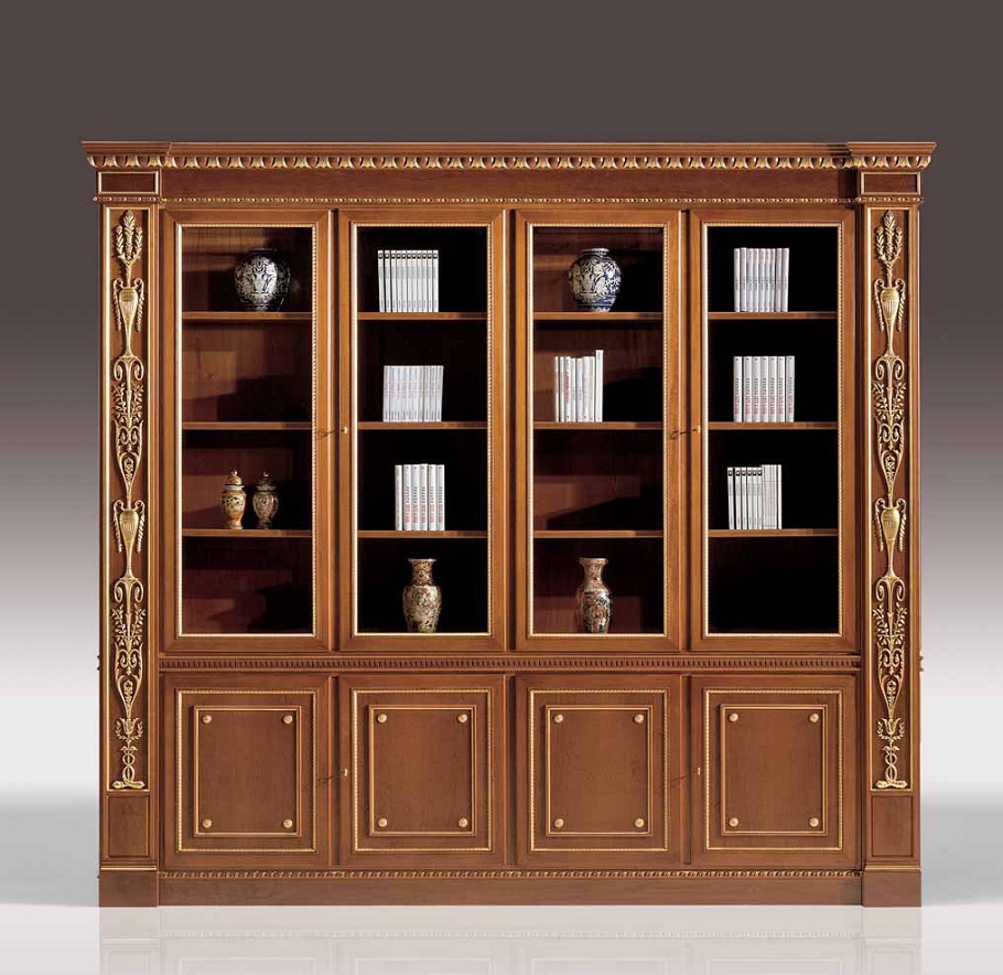 Showcase four-door Louvre from the Italian manufacturer Elledue. The frame, shelves made from solid Italian patinated Hickory wood, lacquered. Element of the decor is carving covered with gold leaf. Colours/varnishing/sizes/shapes - the number of items, depending on the wishes of the customer. A great choice for the office in classic style.
