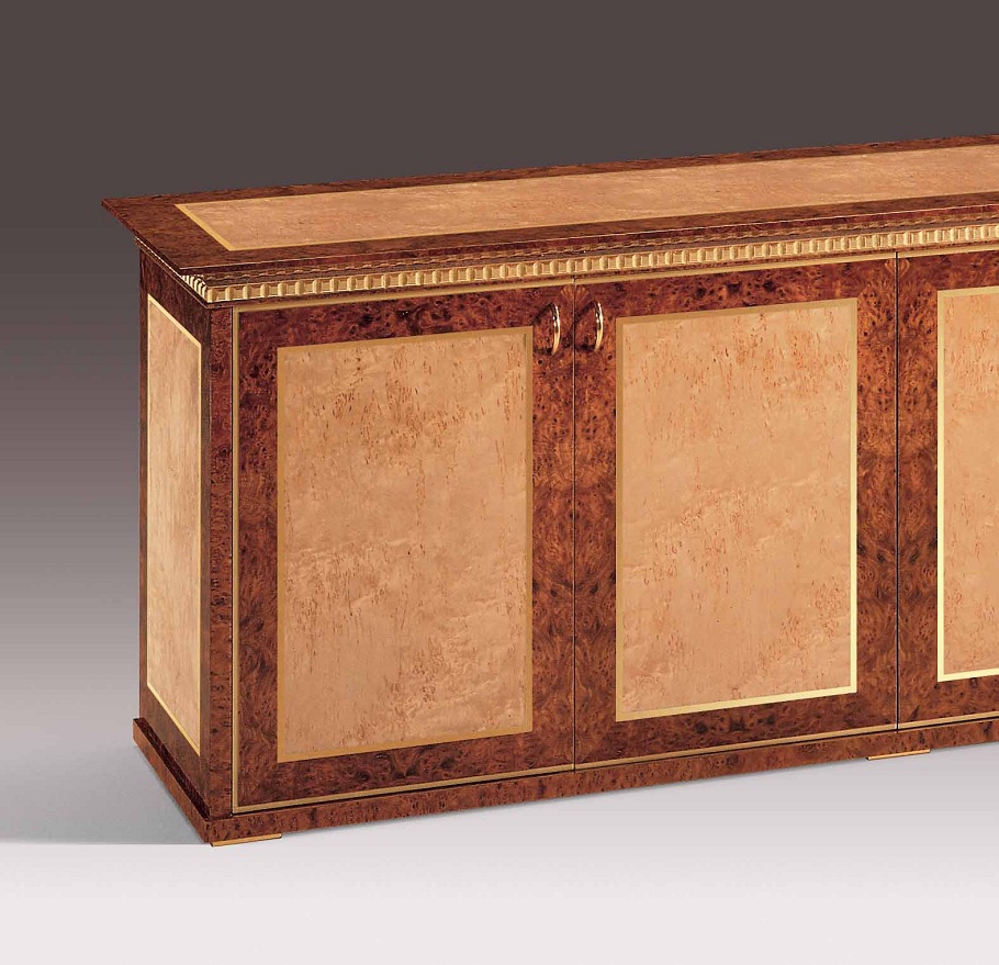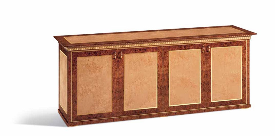 The four-door low Cabinet Myron from the Italian manufacturer Elledue. The frame fronts are made from solid elm wood, varnished. Elements of the decor is gold plated fittings. Colors - in stock. A great choice for the office in classic style. The Cabinet will perfectly complement a table and a window from the same collection.