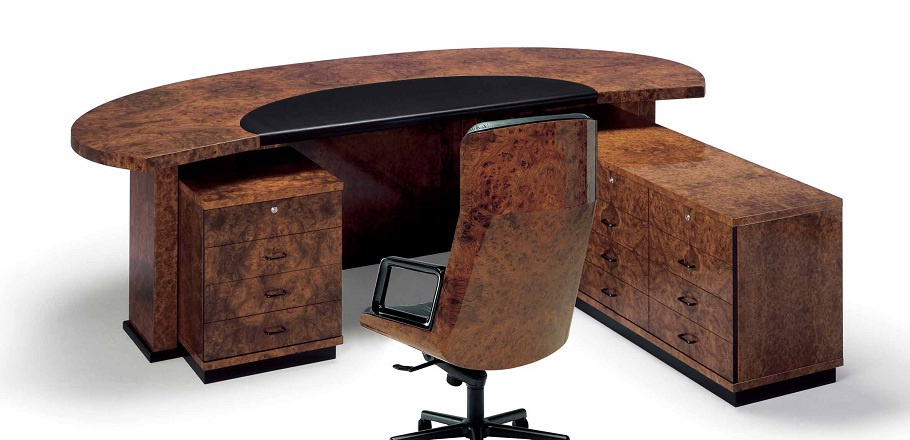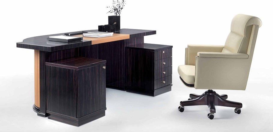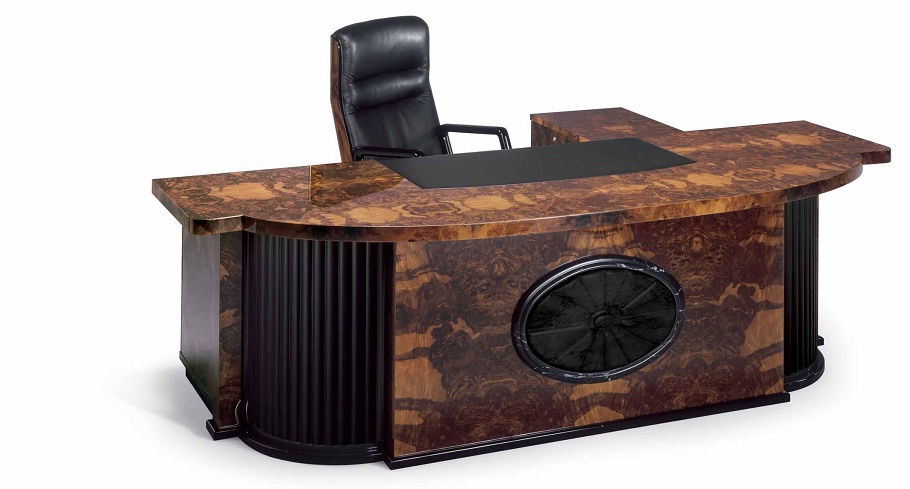 Desk Queenelizabeth from the Italian manufacturer Elledue. The table top, the legs are made from solid wood, lacquered, in the lateral part of the chest is located, as well as an additional section, which increases the useful working area. Part of the main countertop is a coating of natural leather. Colors/veneer/lacquering/ - according to the catalogue of the manufacturer. A great choice for the office in modern style. The table can be supplemented with a wardrobe and a window from the same collection.