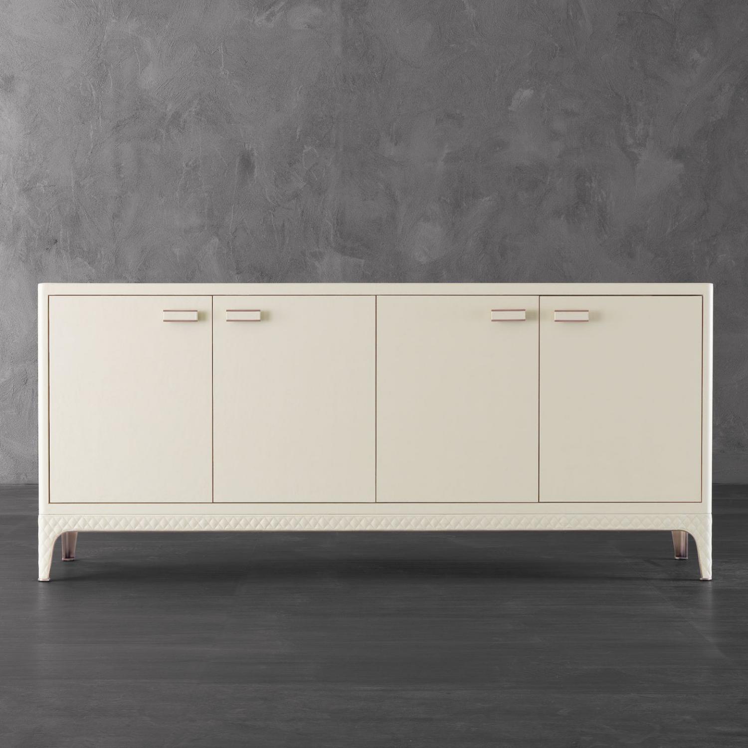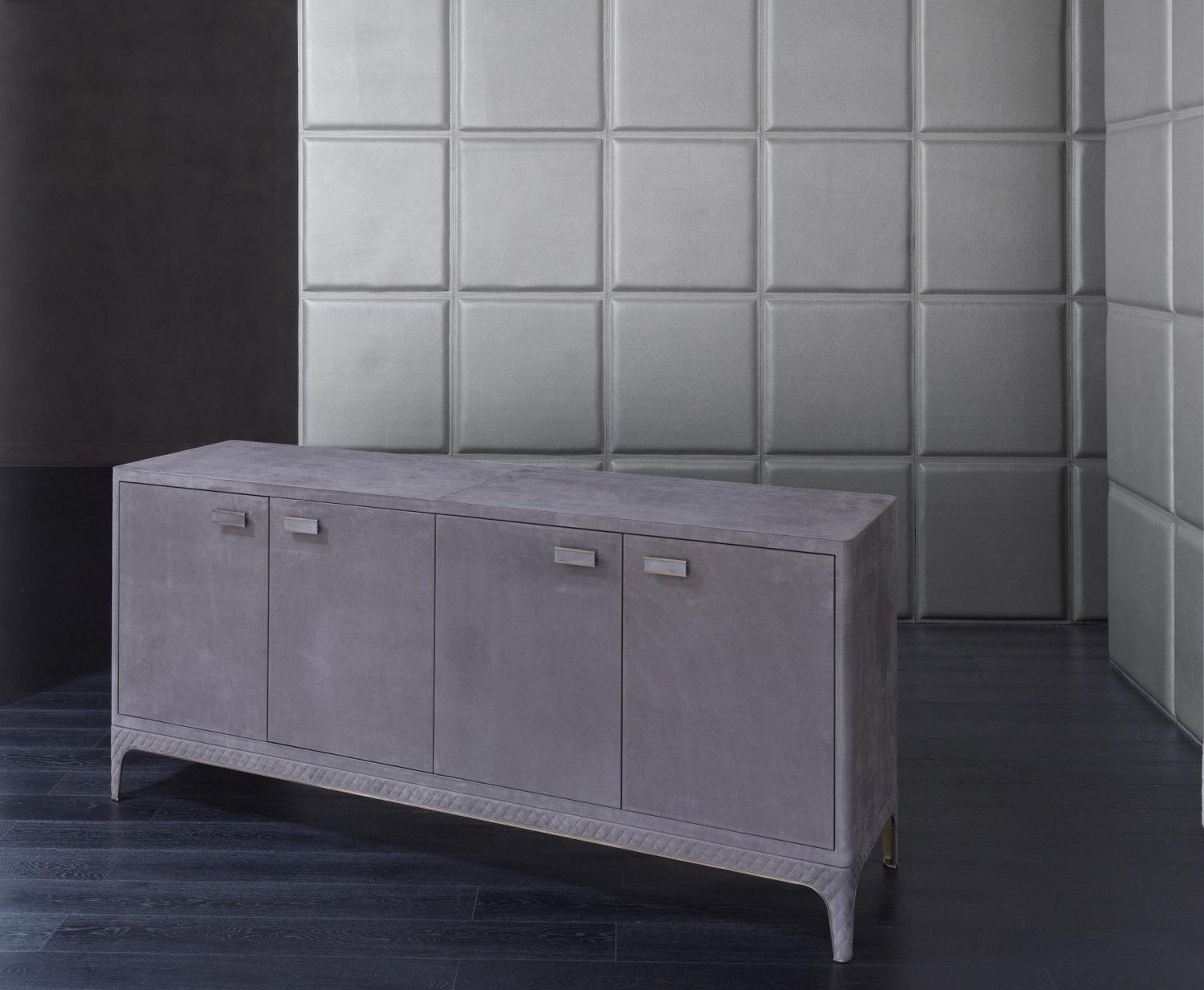 The Joi of drawers from Italian manufacturer Rugiano. Presents a model with 4 and 6 swing doors. The frame is made of wood, doors upholstered in leather. The legs are decorated with bronze or steel. Colors to choose from for the company directory. Inside a chest of drawers with shelves and drawer. Internal furnish of bleached oak or wenge. The drawers fit perfectly into the interior of your living room or dining room.
