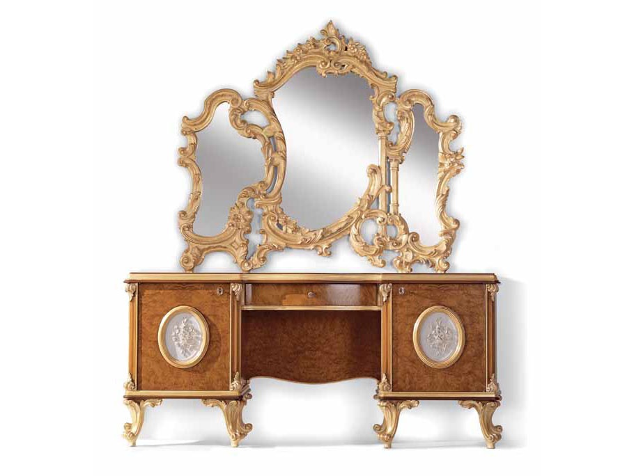 Dressing table from the Italian manufacturer Jumbo Collection, Canova collection. Model in the classic style. The frame is made of wood, decorative elements, handmade in gold plated finish. Colours in stock.