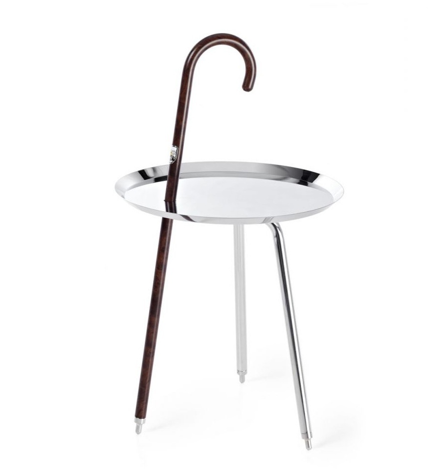 Table Urbanhike from the Dutch manufacturer Moooi. The table frame is made of chrome steel. Walnut cane can be decorated with one of the 7 emblems of the most beautiful cities in the world. Original addition to the interior hallway or living room.
