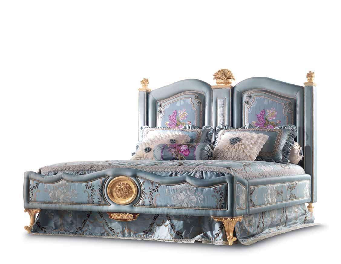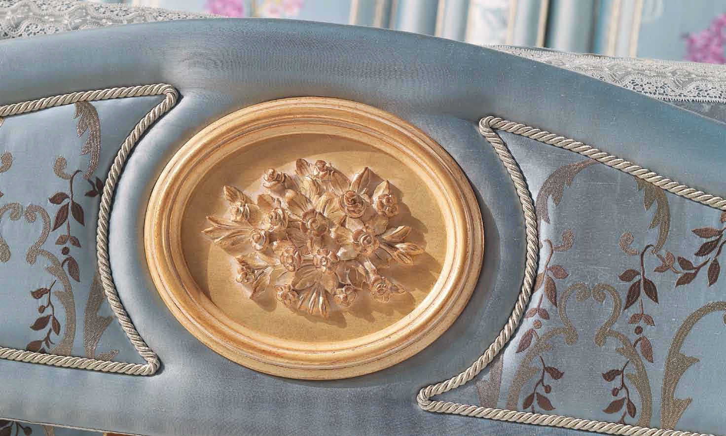 Double bed high headboard from the Italian manufacturer Jumbo Collection. Model in the classic style from the collection of Canova. The frame is made of natural wood, decorative items - handmade. Upholstery - textiles from the company portfolio. Colours in stock.