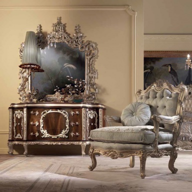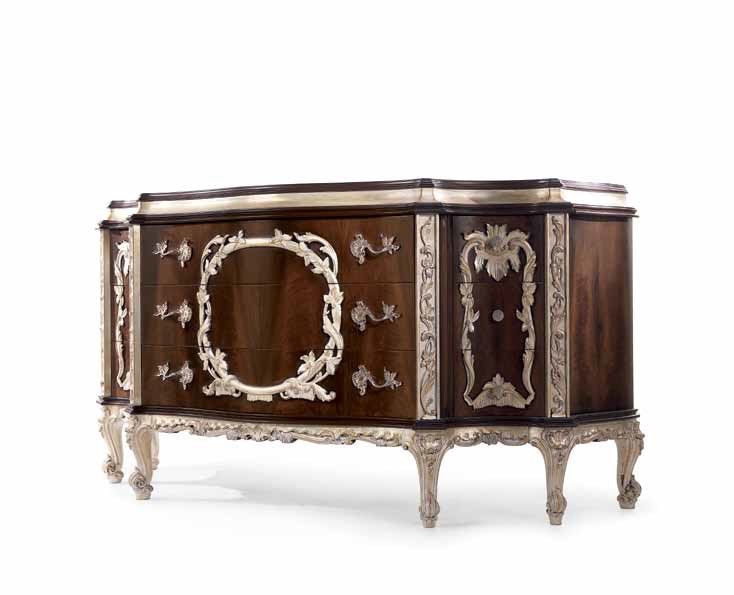 A chest of drawers from Italian manufacturer Jumbo Collection, the Regency collection. The case is made of natural wood, decorative elements in gold plated and silver plated finish. The model will perfectly complement the interior in a classic style. Colours in stock.