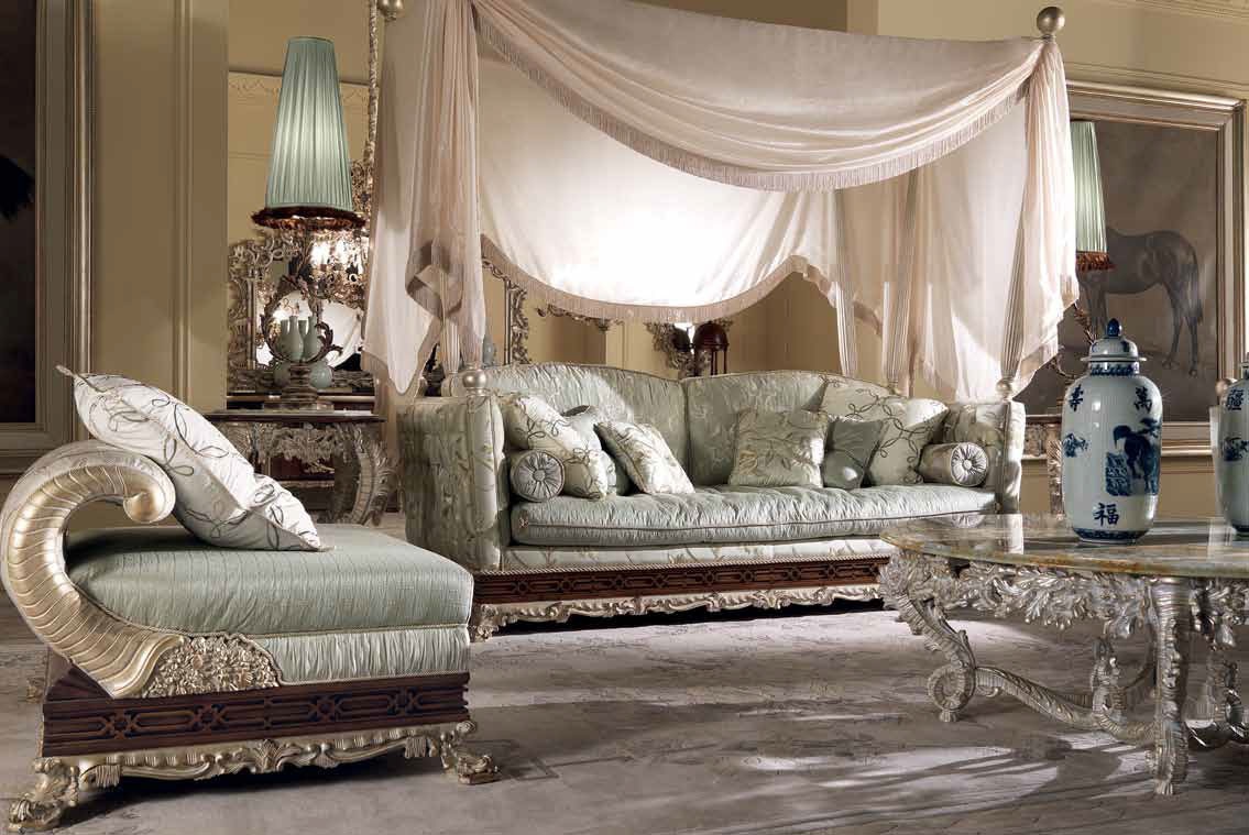 Three seater sofa from Italian manufacturer Jumbo Collection, the Regency collection. The frame is made of wood, decorative elements in gold plated and silver plated finish. Upholstery - textiles from a range of campaigns. The model will perfectly complement the interior in a classic style. Colours in stock.