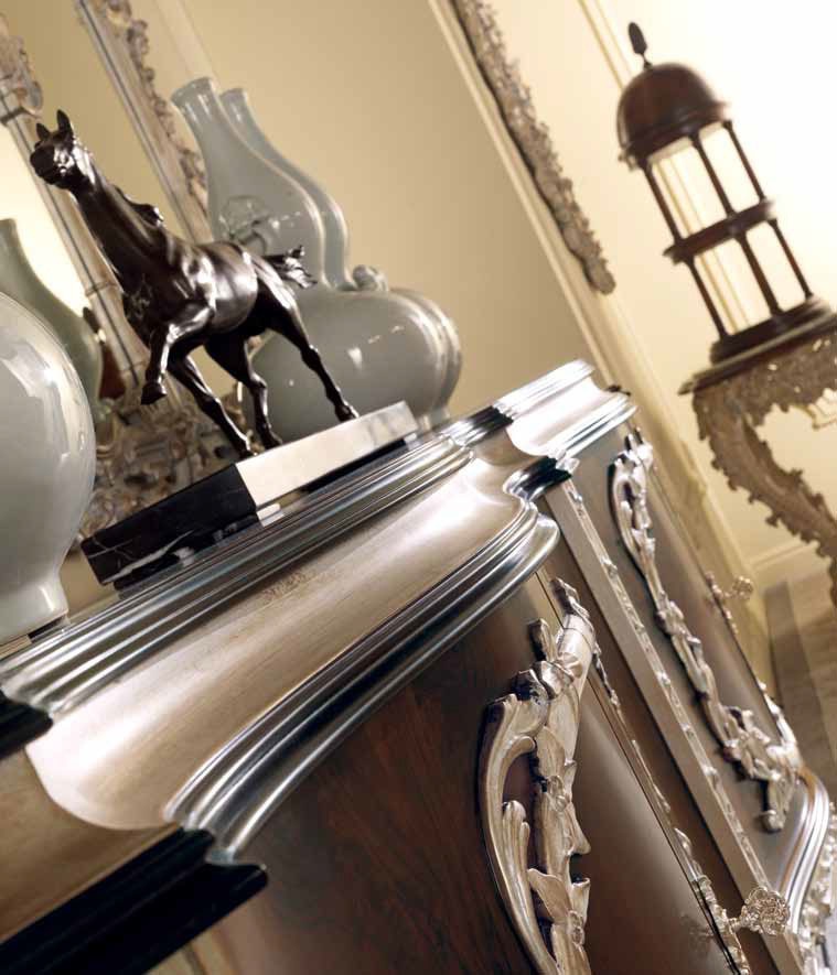The buffet from the Italian manufacturer Jumbo Collection, the Regency collection. Model in the classic style. The case is made from natural wood carving - handmade, gold plated and silver plated finish. Colours in stock.