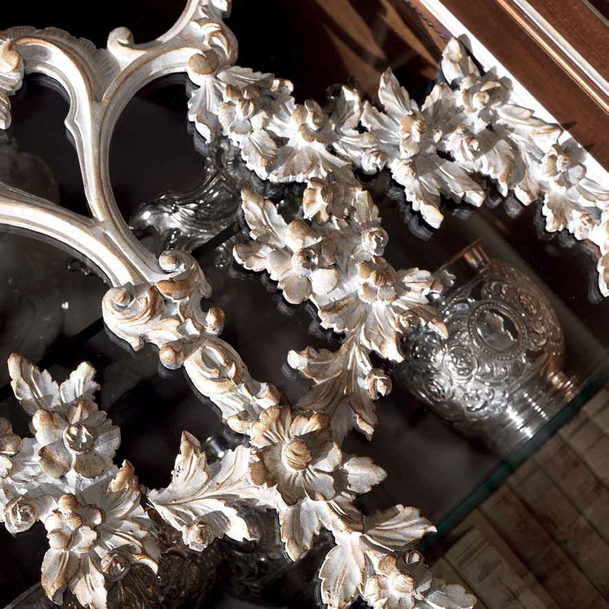 Showcase from Italian manufacturer Jumbo Collection, the Regency collection. Model in the classic style. The case is made from natural wood carving - handmade, gold plated and silver plated finish. Colours in stock.