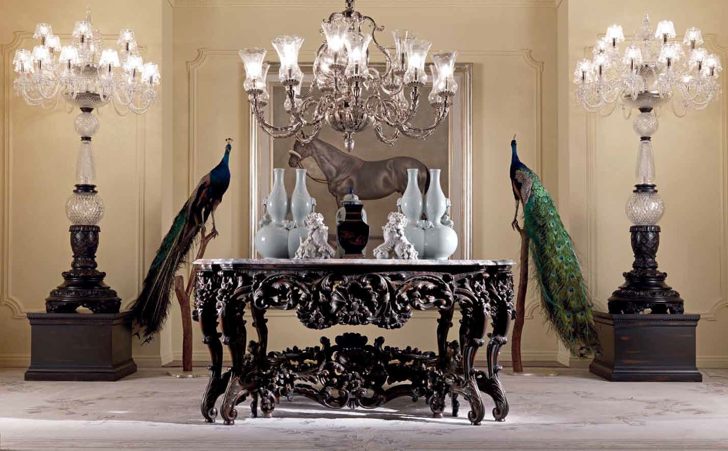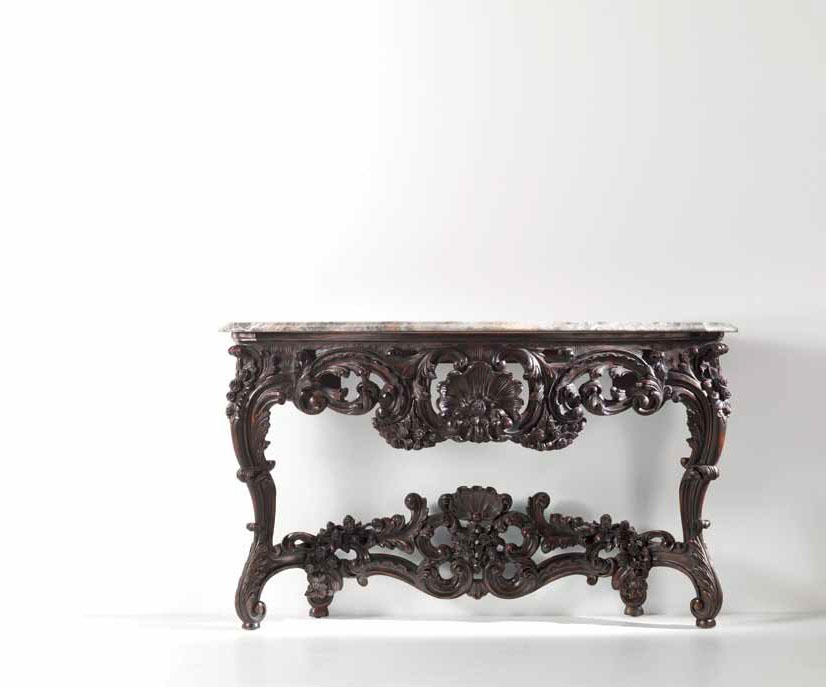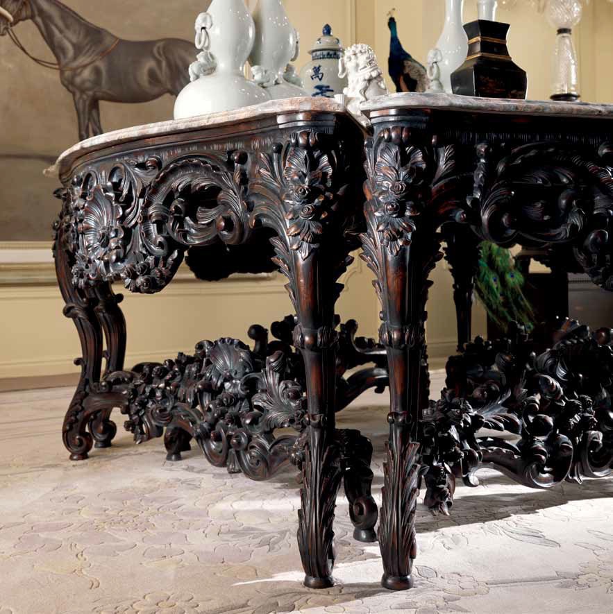 The console from the Italian manufacturer Jumbo Collection, the Regency collection. Model in the classic style. The frame is natural wood carving - handmade. The table top is made of marble. Colours in stock.