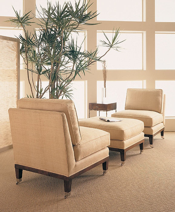A chair on wheels Statewood Armless from an American manufacturer Century Furniture. The frame is made of wood and metal. Upholstery textile or leather. Provide maximum comfort and relaxation. Model of modern design. Colours in stock.
