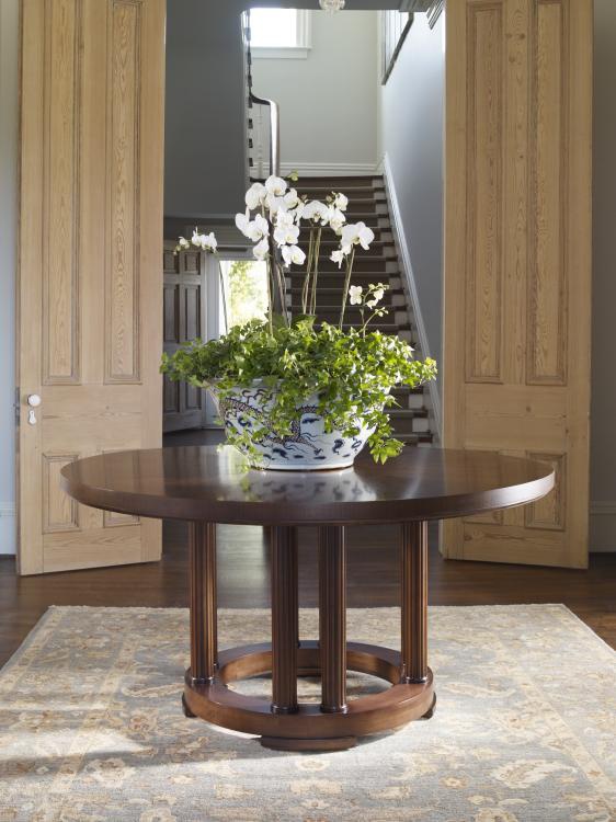 Dining table Round Dining from an American manufacturer Century Furniture. The frame is carved, handmade from solid wood. The wood is covered with a transparent substance, which protects it from damage. The model on the round base of wood. Colours in stock.