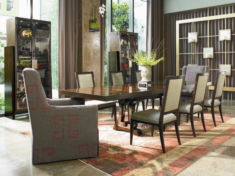 Dining table rectangular Dining Qin from an American manufacturer Century Furniture. The frame is made of metal with Nickel-plated legs. A model with a top made of solid wood with a lacquer composition that protects against damage. Colours in stock.