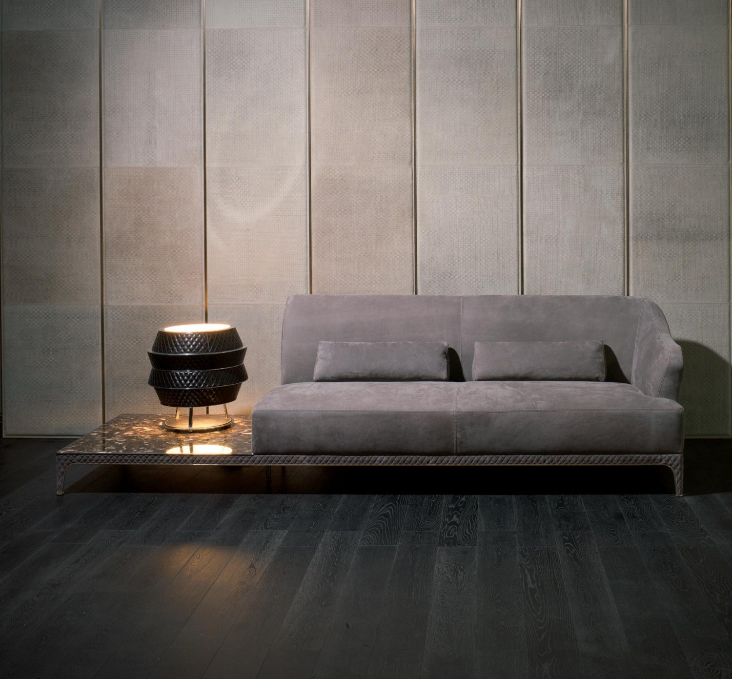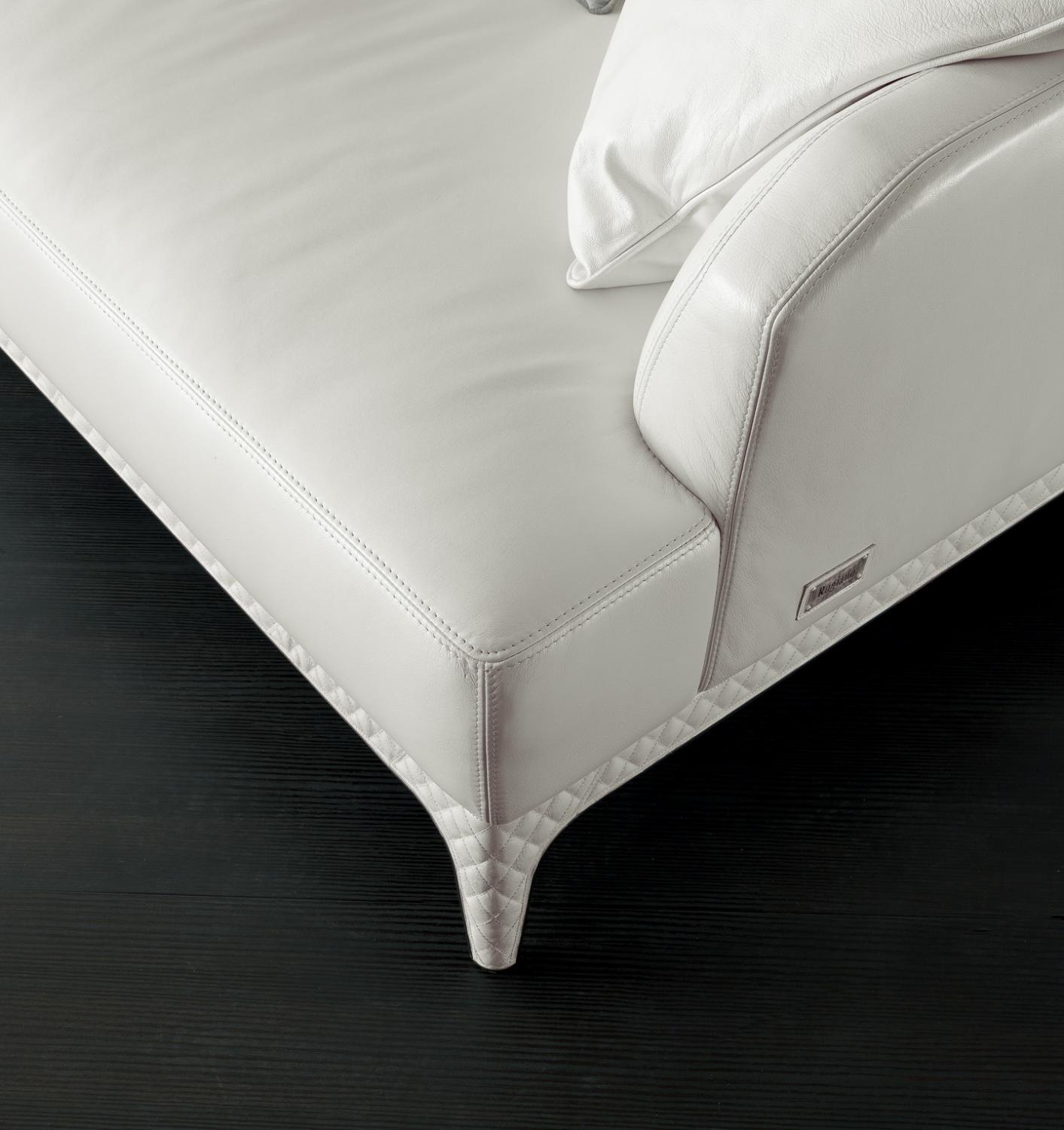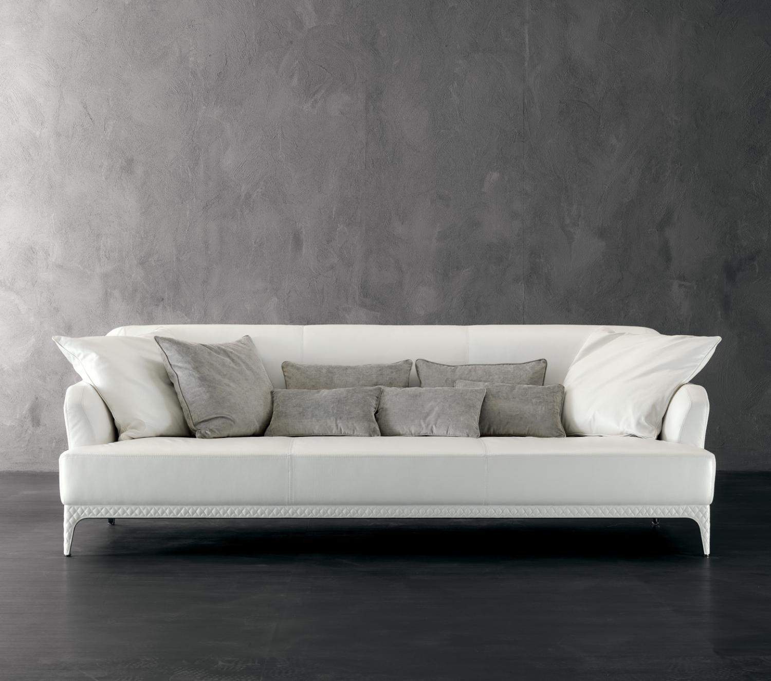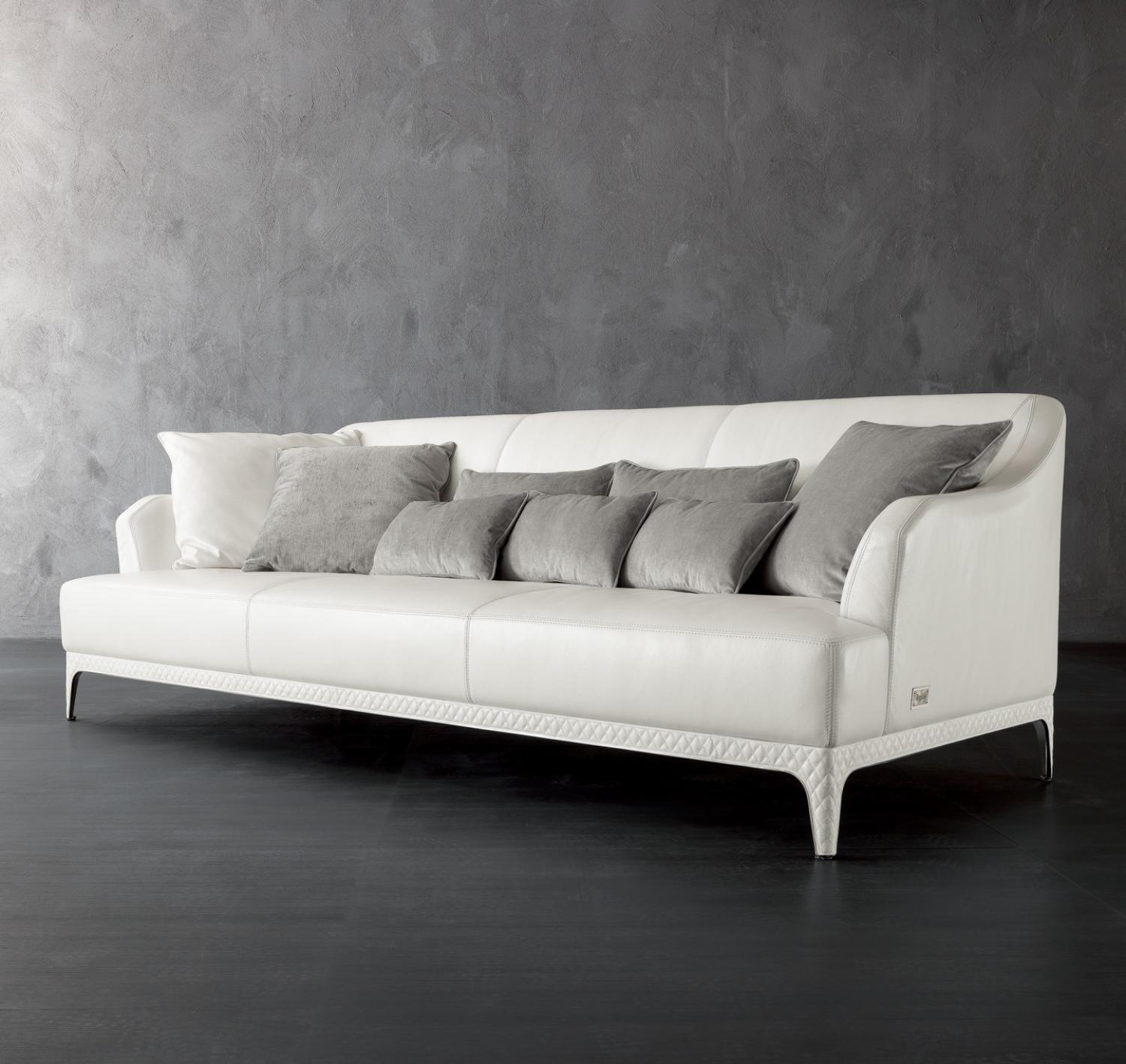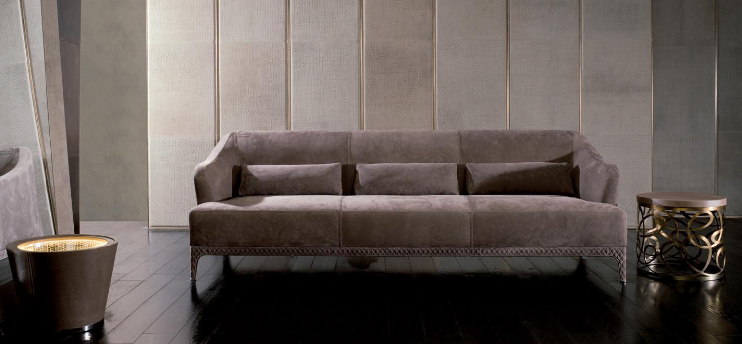 Oscar three seater sofa from Italian manufacturer Rugiano. Model with backrest becomes the armrest. The sofa legs are made of steel, leather or textile. Skeleton models made of wood, filler - polyurethane foam of different hardness. Upholstery textiles or leather colours to choose from a catalog company. Factory direct offers the option of a sofa with a table, in the leather, glass or marble. The model will surely embellish your living room interior in modern style with elements of art Deco.