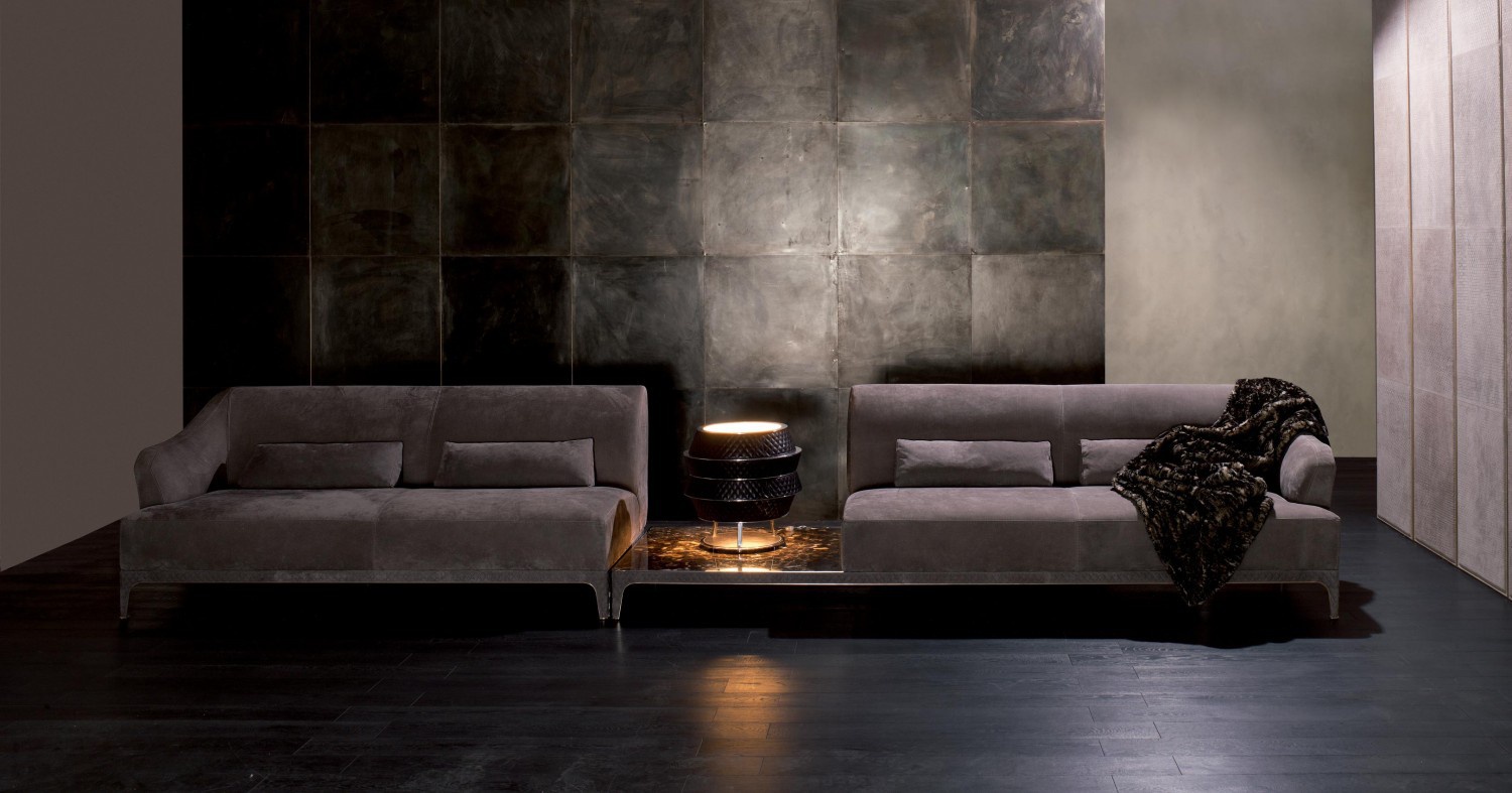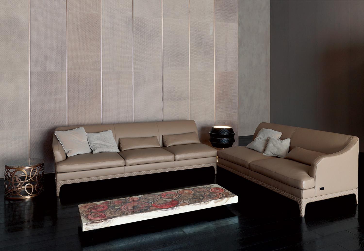 Triple Oscar Chic sofa from Italian manufacturer Rugiano. Model with backrest becomes the armrest. The sofa legs are made of steel, leather or textile. Skeleton models made of wood, filler - polyurethane foam of different hardness. Upholstery textiles or leather colours to choose from a catalog company. Design complete pillows of different sizes. Factory offers straight and corner version sofas, of various sizes. The model will perfectly fit the interior of modern living with elements of art Deco.