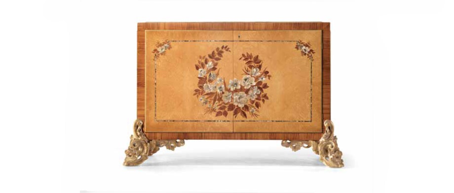 The buffet from the Italian manufacturer Jumbo Collection. Model from the collection of Hermes, executed in classical style. The case of natural wood, decorated with carving and inlay. Colours in stock.