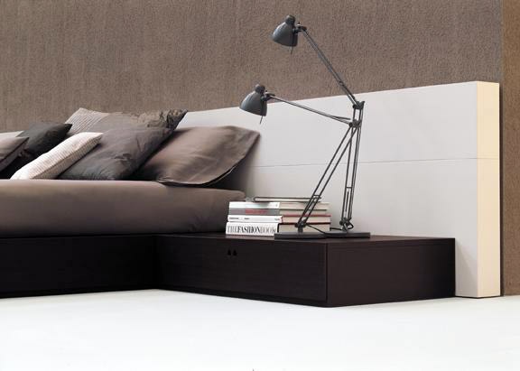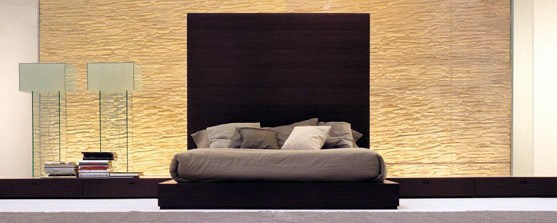 Double bed on the podium Niki Night, Mobileffe, with a high headboard. Designer model, made in a modern style. The headboard is made of wood, in the veneer finish.