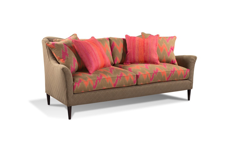 Two-seater sofa from American proizvodite Harden is suitable for a comfortable stay in the sitting position. Made in the style of Neoclassicism, characterized by its lightness and elegance of forms. Frame made of natural wood, tapered legs, quilted side panels, figure the back is complemented by two standard pillows. Four removable cushions ensure complete comfort during a day of rest. More than 800 variants of designer fabrics, leather and finishes according to the manufacturer's catalogue, including new eco-friendly fabric and pillows. Until the XIX century upholstered furniture was considered a luxury because of the high cost of high-quality textile products. The development of modern technologies in the production of upholstery materials today provide a wide range of upholstered furniture for every taste.