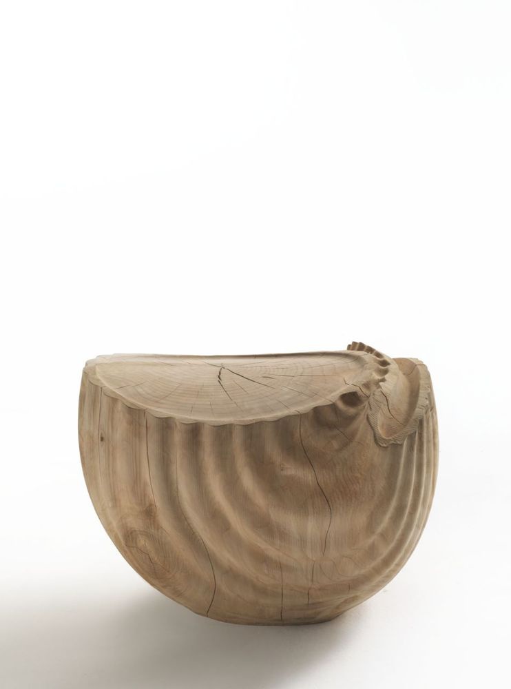 Poof Pipa from the Italian manufacturer Riva 1920. Stool carved from a single trunk of cedar and decorated with a high-end machine threaded. The tubular shape of spaghetti or a snail. The design is executed in modern style.