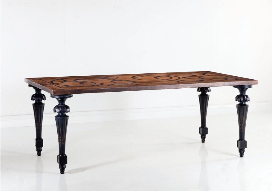 Dining table from the Italian manufacturer Chelini. Countertop rectangular. The table is made of solid wood. Decor item is hand carved and painted countertops. The surface artificially aged. Colors - brown, black. The model is made in classic style. The roomy table, perfect for living room, dining room in classic style.