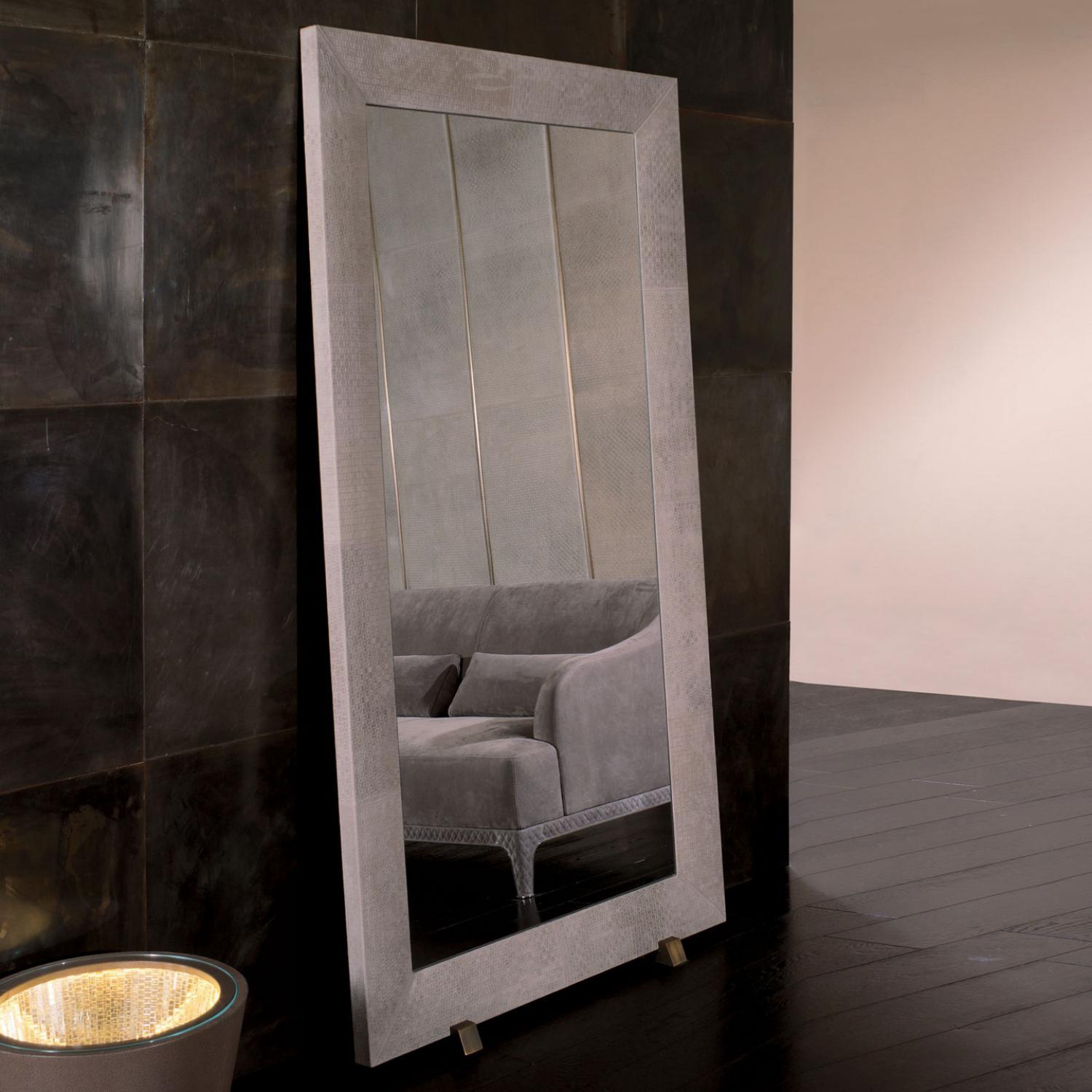 Mirror Bucarest from the Italian manufacturer Rugiano. The model is available in several variations of sizes and shapes. Frame in leather, colors to be selected from the company directory. Great addition for your living room, dining room or bedroom in modern style with elements of art Deco and glamour.