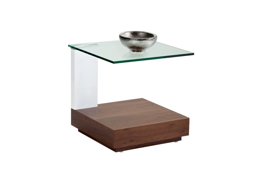 Everett coffee table from the American manufacturer Sunpan Modern Home. Made in the style of constructivism, this cubic table is easily fits in any modern interior. A table is assembled on the base, a veneered American walnut; table top is tempered glass 10 mm thick. the Stand is made of polished stainless steel. This versatile table can be used as coffee, bedside, table etc Sunpan Modern Home is one of the leading furniture companies in the world, which succeed in designing and producing of furniture combining classical tradition with the latest fashion trends.
