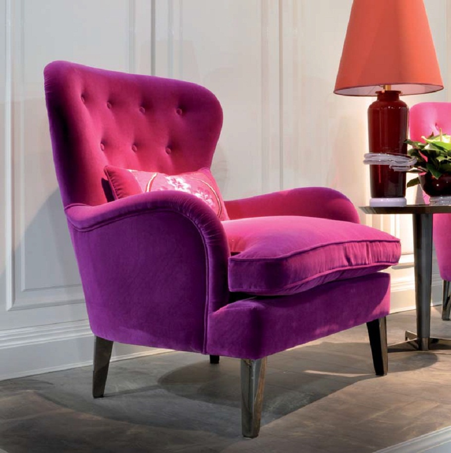 A chair from the Italian manufacturer Elledue. The model is made from solid wood, the frame is hidden. Filler - polyurethane foam. Upholstery textiles. Decorative elements - stitch. The chair is a modern style with elements of glamor. Color range: pink. The perfect choice for the living room.