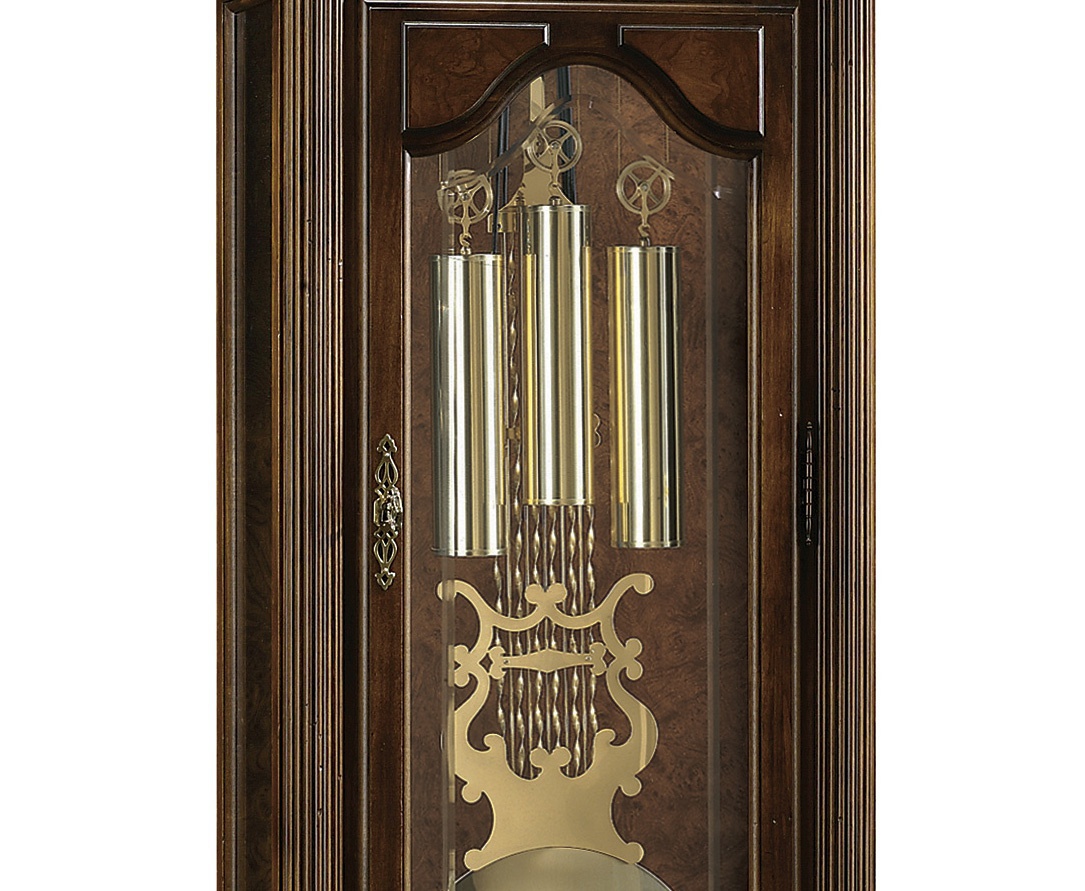 Watch outdoor Archdale from the American manufacturer Ridgeway. Made of wood oak or solid rock. Classic model with carved frame with elegant Swan neck. Door with beveled glass crystal. Dial in silver finish with Arabic numerals and stationary Astrological Moon dial. Pendulum - Lira silver plated with embossing on the center of the disk.