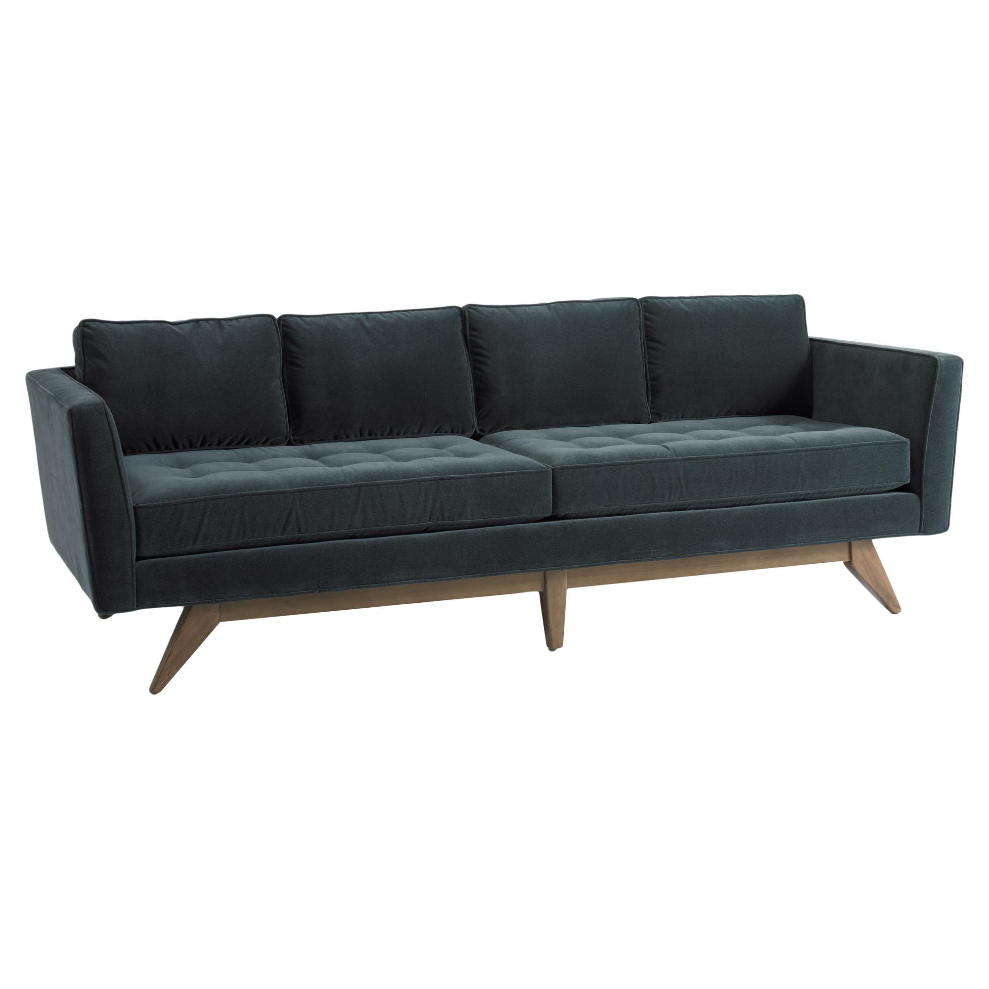 Fairfax four-seater sofa from the American manufacturer DwellStudio. The classic model is distinguished by the relief of the sofa for a Smoking room, an elegant respectability of modern style. The sofa will adorn the spacious living room or billiard room. Beautiful wooden frame, angular beveled legs, the seat is quilted and decorated with buttons. The back of the form 4 removable pillows, upholstery color velvety gray. The company DwellStudio is one of the most innovative brands in the field of production of modern furniture, bedding accessories and home decor. In furniture production the company uses only materials that meet the requirements of CARB. Each new collection company DwellStudio extends the aesthetic boundaries of contemporary design furniture.