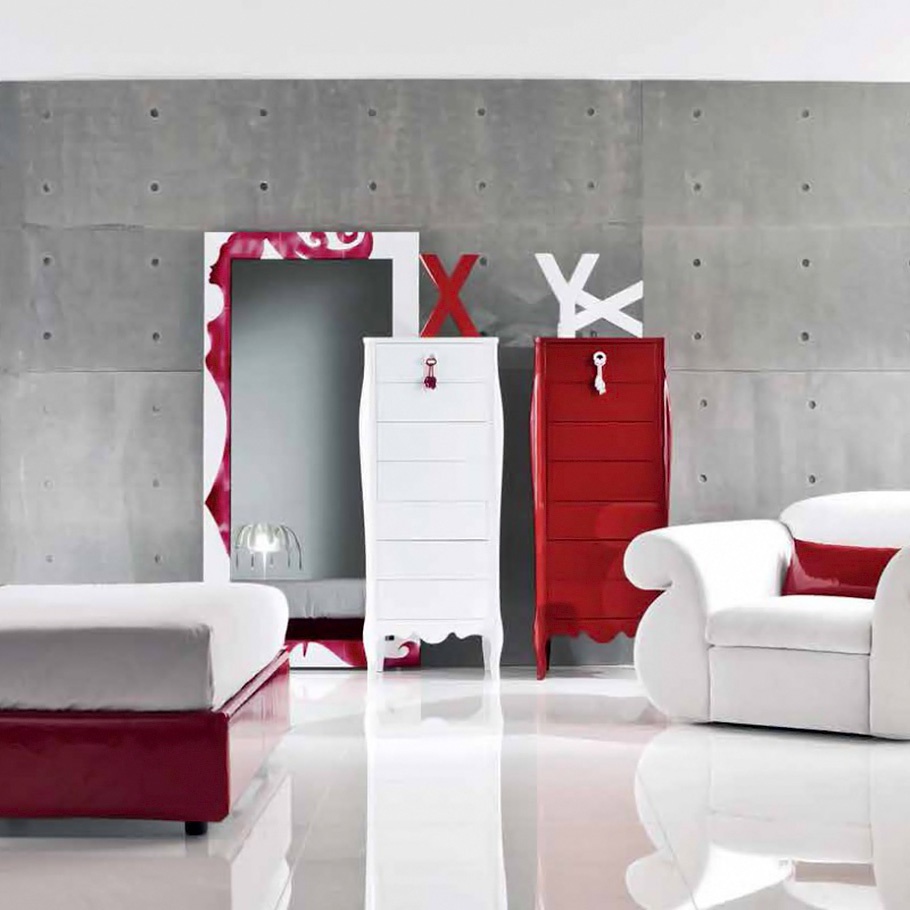 Chest Sinfonia La Bemolle from the Italian manufacturer Moda. Made of solid wood with seven drawers for storage. Accessories - decorative rope, high legs Cabriole. Color: red, white, possible variations in the catalog of the manufacturer. The furniture style glamour, fits perfectly in a modern interior. Combines functionality and style.