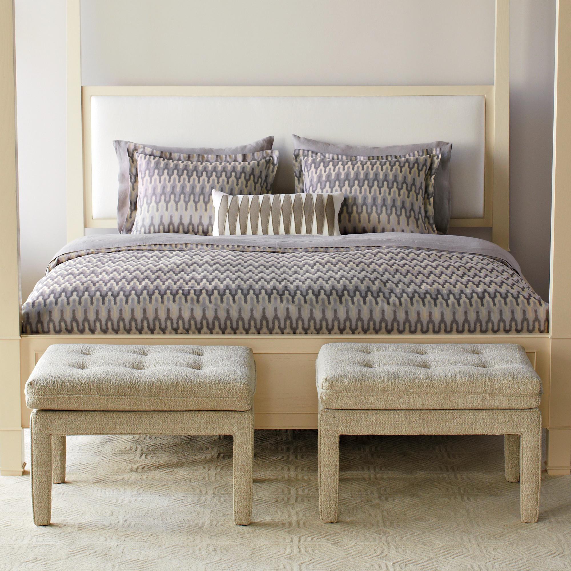 Pouf with pillow Warren from the American manufacturer DwellStudio, made in the style of minimalism, will serve as a very convenient addition to the bedroom or living room. The rectangular frame of the stool is made of European beech, upholstered in a soft grey melange fabric and stitched around the edges. Rectangular removable pillow are beautifully finished with stitching, buttons, and Welt. The pillow shape is achieved by using filler - a mixture of premium polyurethane with polyester fibers. Soft comfortable pouf can be used as bedside, in the dressing room or the hallway, and to give our feet a rest . The company DwellStudio is one of the most innovative brands in the field of production of modern furniture, bedding accessories and home decor. In furniture production the company uses only materials that meet the requirements of CARB. Each new collection company DwellStudio extends the aesthetic boundaries of contemporary design furniture.