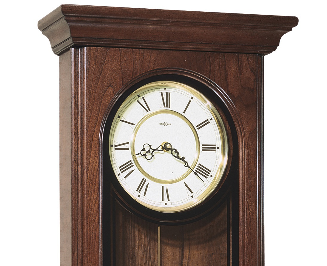 Wall clock Orland from American manufacturer Howard Miller. Model with a frame made of wood or cherry on select hardwood and veneers. Roman dial is enamel coated and separate convex rings in the center and edge of the disc. Door with beveled glass crystal. The pendulum of polished brass.