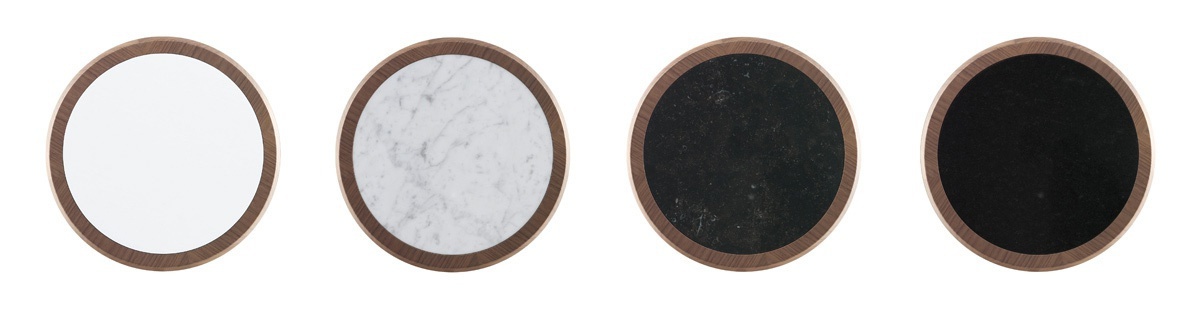 Anna coffee table from the Italian manufacturer Polifоrm. Model with round countertop made of wood and Matt lacquer finish or veneer. Top wood available in two finishes marble or leather. Color to be selected from manufacturer's catalogue.